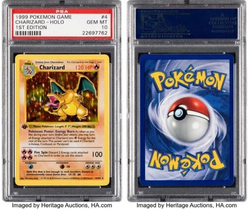身价年年攀升本次成交的卡牌为 1999 年发行之「第一版基础套组(First-edition base set)」喷火龙,且获得 PSA 10(Gem Mint,宝石近完美)的最高等级鉴定。此一价格大幅超越了 2022 年 3 月所创下的 42 万美元纪录,涨幅高达 13 万美元。据悉,整场拍卖会总成交额达到 520 万美元,同样创下该拍卖行的历史新高。