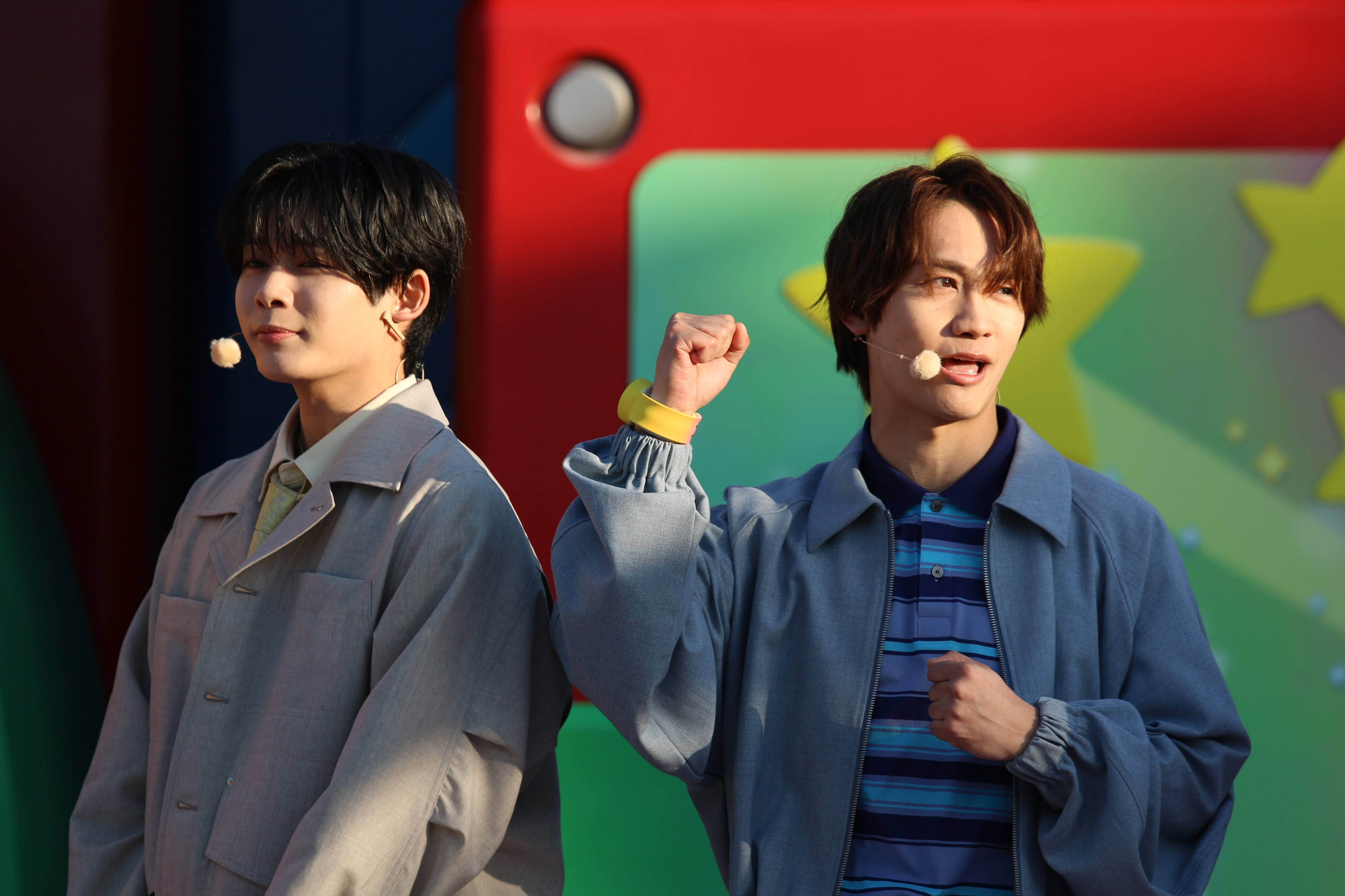 其中,藤原丈一郎与大桥和也体验了人气设施「玛利欧赛车~库巴的挑战书~」;高桥恭平、大西流星、长尾谦杜则在「炸弹兵・零散拼图」中玩闹成一团;道枝骏佑与西畑大吾两人挑战「咚咚・翻转板」,尽情享受以全身投入的「游玩」体验。
