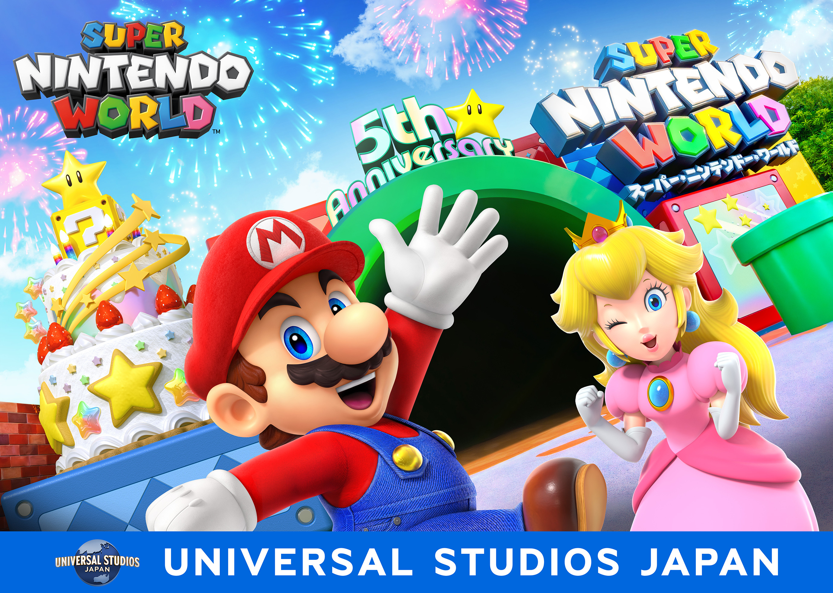 「超级任天堂世界」于 2021 年 3 月 18 日开幕,至今迎接开业 5 周年,并获得「THEA 大奖」与「日经 MJ 奖」等多项肯定。2024 年 12 月 11 日起,重现咚奇刚世界的「咚奇刚国度」开放,在丛林般的空间中登场的「咚奇刚的疯狂矿车」也被来园者评为满意度 No.1。