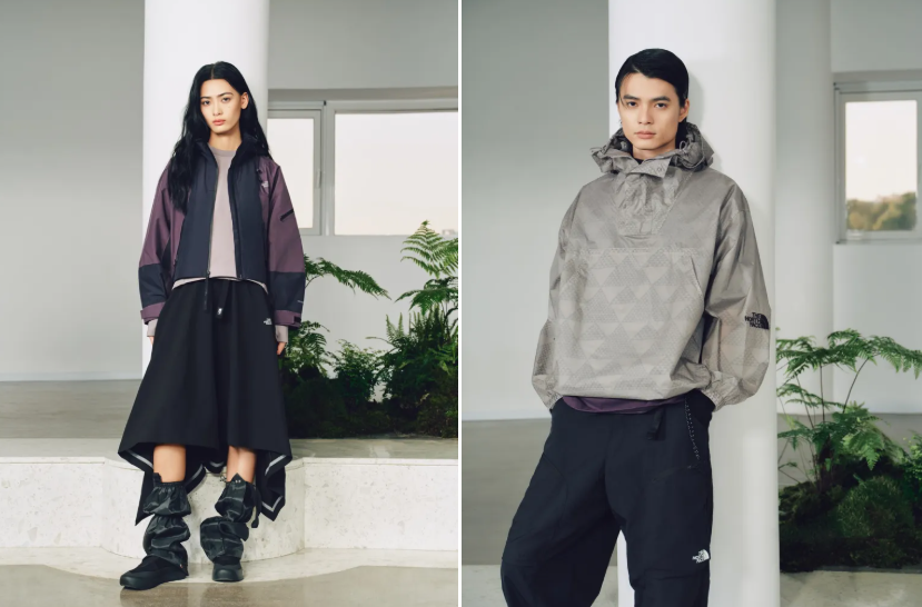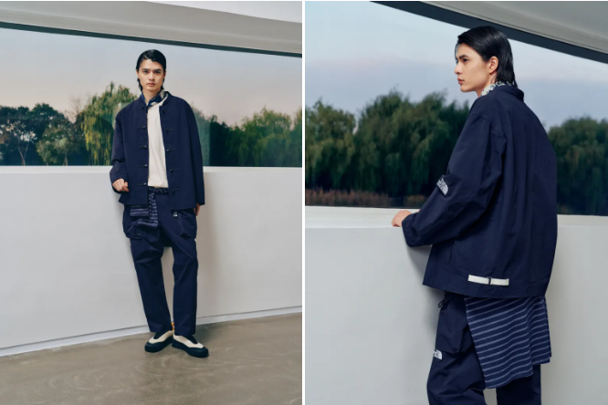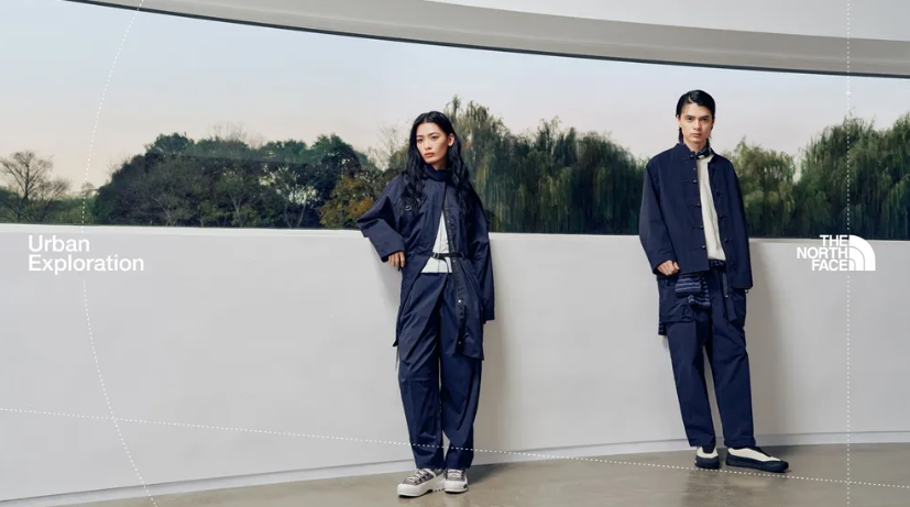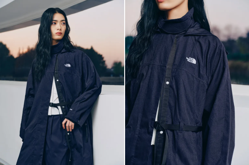 近期流行的新中式风格,在男款蓝色 DWR 防泼水传统风格设计外套可以看到,它以耐磨布料为基础,具抗紫外线功能。绳索细节巧妙融入传统元素「立领」与「盘扣细节」增添亮点,同时让实用单品展现多重文化表达。女款丹宁可拆卸连身服将专业登山服饰转化为个性都市连身工装,布料结合 COOLMAX 与 CORDURA 科技,在保留牛仔质感的同时,提升舒适与耐用性。专为亚洲身形优化的宽松剪裁、可拆卸袖子及自带收纳小包的腰带设计,完整回应女性都市探索中对灵活与实用的需求。】