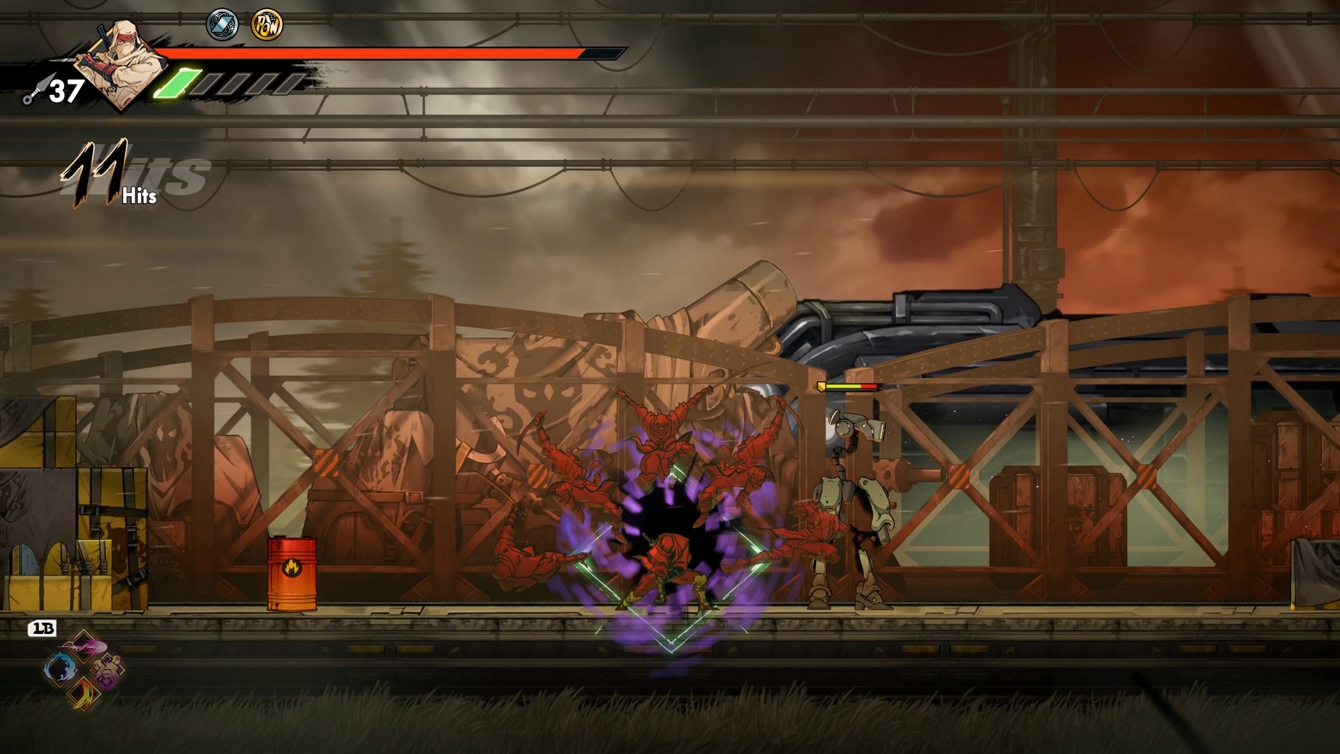 在玩法方面,DLC 延续本篇的横向动作架构,玩家依旧操控「乔‧武藏」进行关卡推进,透过刀剑、忍术与忍法组合出流畅连击。关卡流程以探索、战斗与平台操作为主,最终将迎来对应主题的头目战。整体结构与本篇一致,属于在既有系统基础上的延伸内容,让玩家能以熟悉的操作节奏体验新关卡。