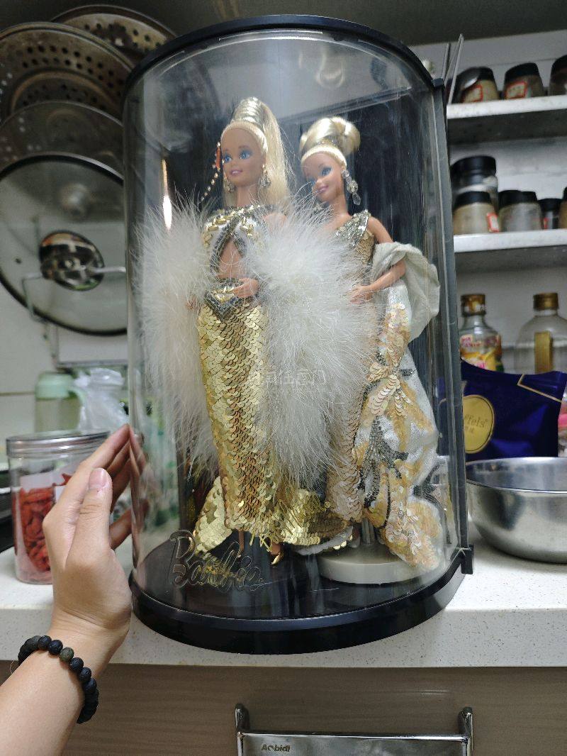 奢华典藏,芭比的金色梦境——致收藏级芭比娃娃的绝美礼赞 当目光触及这组收藏级芭比娃娃,仿佛瞬间坠入一场流光溢彩的金色梦境。她们身披奢华金箔与亮片交织的华服,每一片缀饰都折射出璀璨光泽,将“精致”二字演绎到极致。左边芭比的羽毛披肩轻柔蓬松,似云端织物,与金色鳞片裙碰撞出复古与华丽的火花;右边芭比的礼服则以渐变金白勾勒出优雅轮廓,每一处剪裁都尽显匠心。 芭比的发丝金黄亮丽,造型精致考究,或高束成复古马尾,或盘成优雅发髻,搭配闪耀的配饰,从耳饰到裙摆的细节,无一不彰显着收藏级别的工艺水准。那透明展示柜更是点睛之笔,既能守护这份美好,又能让每一寸华丽细节都清晰呈现,“Barbie”的 Logo 低调又郑重地宣告着它的身份——是玩具,更是值得珍藏的艺术臻品。 对于芭比收藏爱好者而言,它是梦幻的具象化;对于追求品质摆件的人来说,它是点亮空间的奢华焦点。从工艺到设计,从情怀到颜值,它都配得上最真挚的好评,是一次将童年绮梦与成人审美的完美收藏体验,入手即惊艳,这份金色的浪漫,值得永远珍藏。