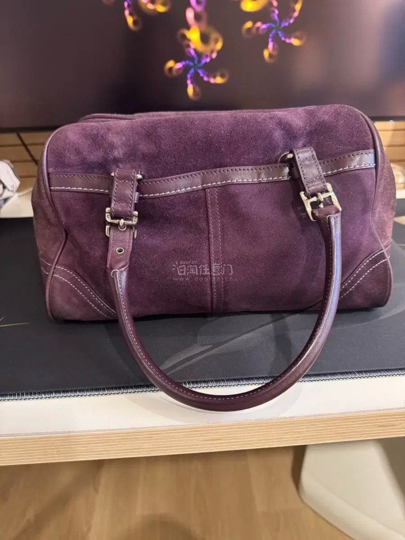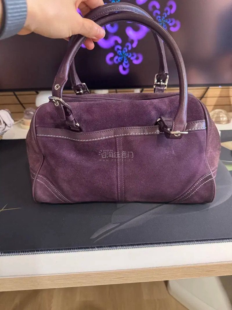?紫色麂皮手提包到手太惊喜啦!质感超绝,麂皮细腻柔软,泛着高级雾面光泽,紫色调浓郁又显品味,不是廉价货能比的。五金质感在线,牢固有光泽,细节处尽显品质。