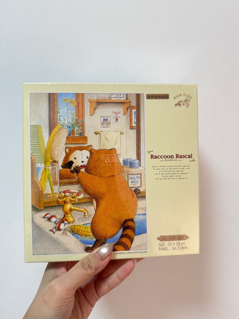 今天又到了两箱竹蜻蜓,很幸福。第一箱是这两幅图,一副300片的小浣熊照镜子,一副500片的迪士尼全明星交响乐团,都很好看