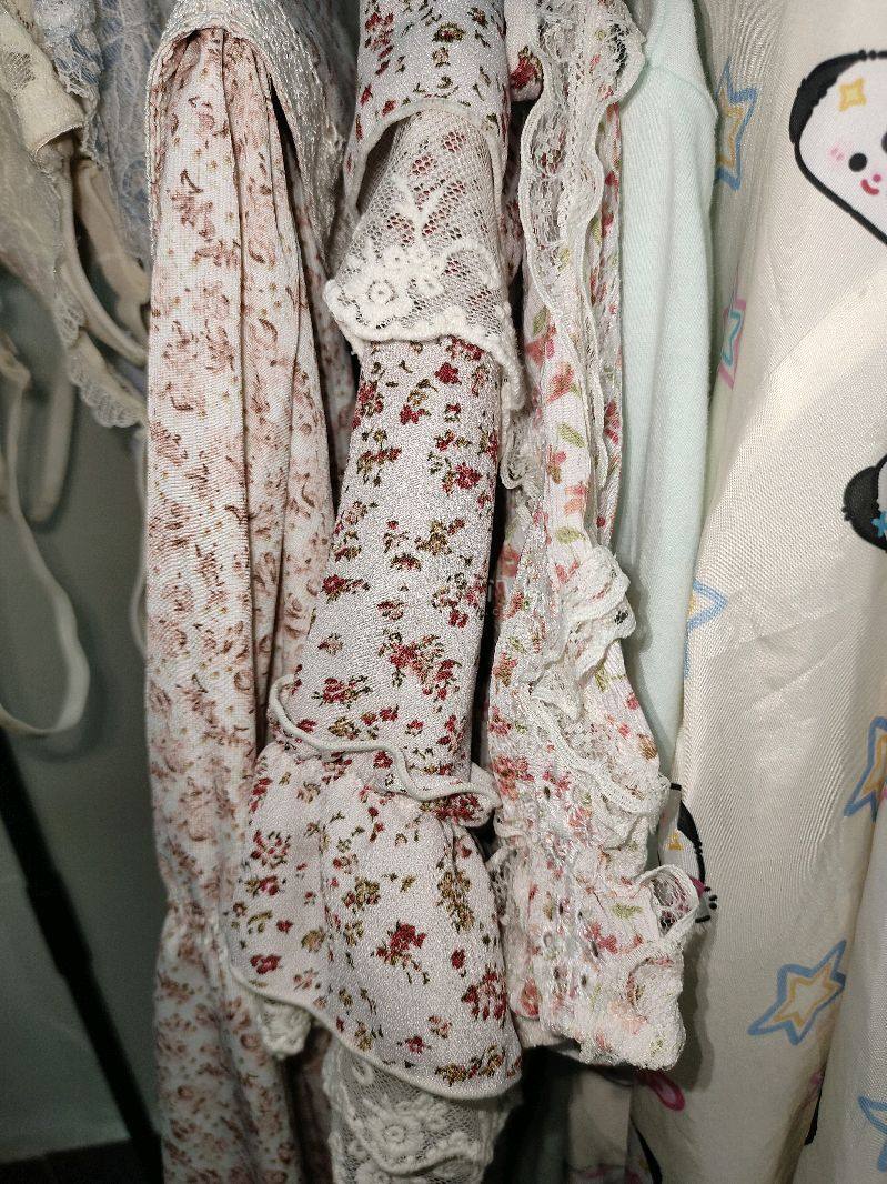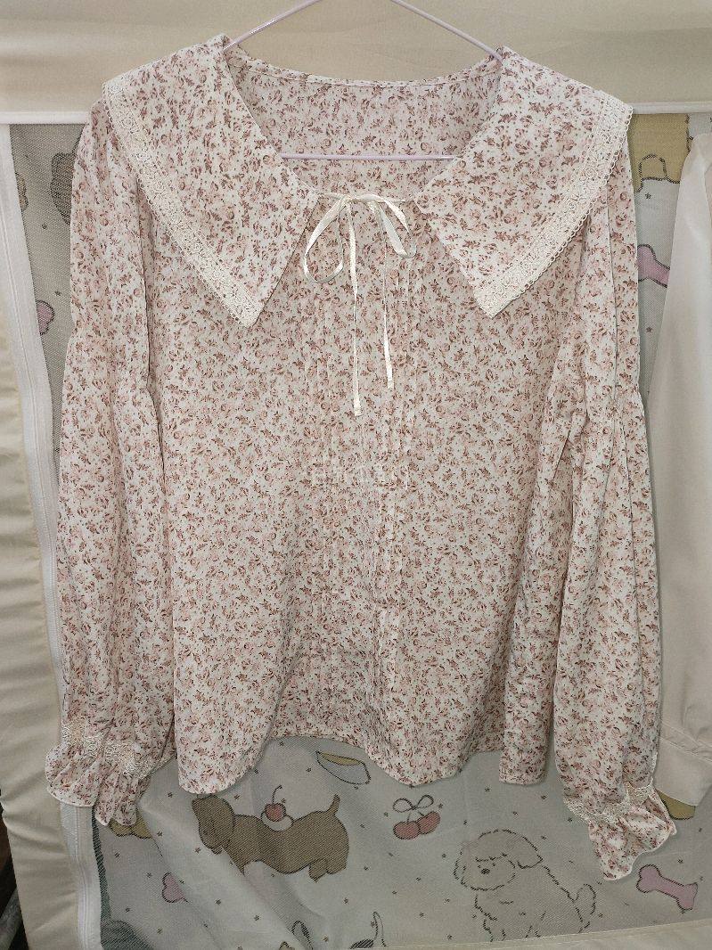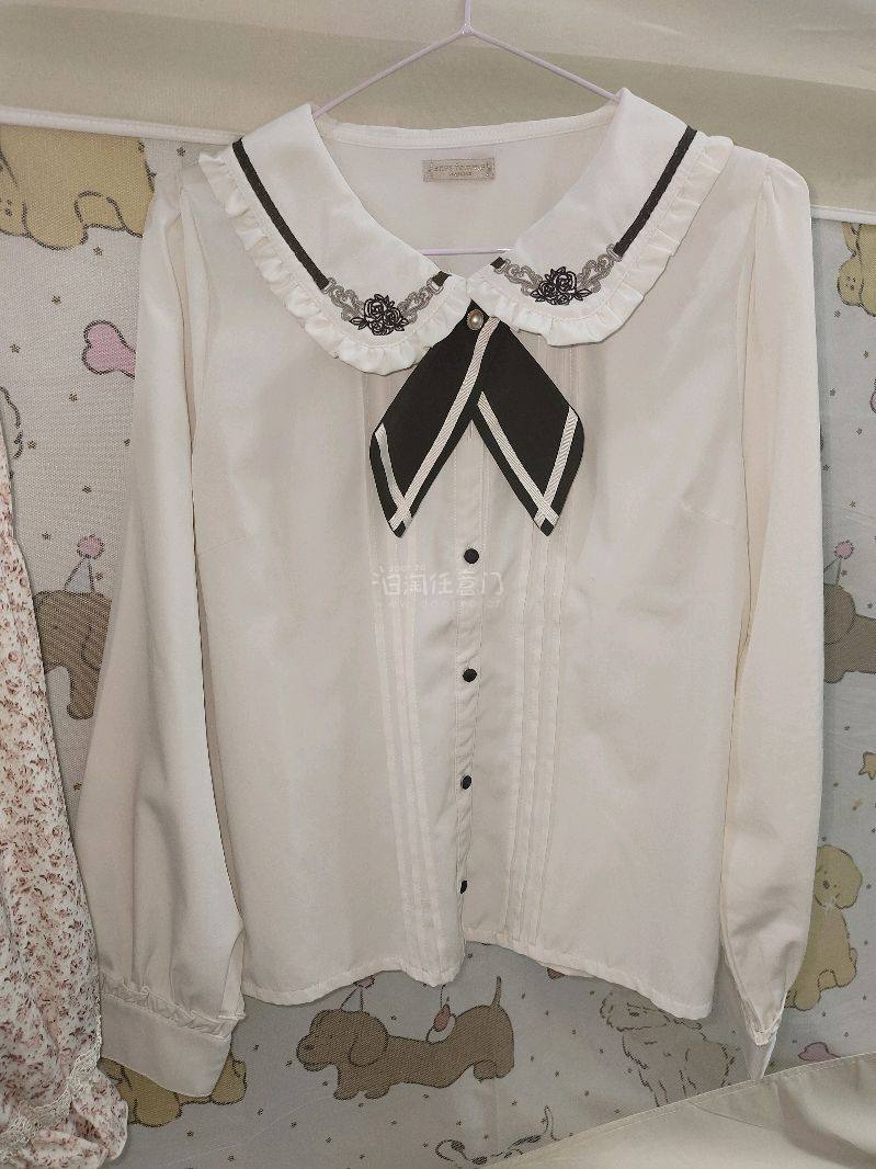 第一件碎花衬衫,带着蕾丝大翻领和系带设计,很有vintage感,这种在国内很难找到同款的小众款,在挖煤姬能轻松搜到日本煤炉或中古店的货源,而且平台的入库拍照服务会把领口蕾丝、碎花细节都拍得清清楚楚,不用担心收到货和图片不符。第二件刺绣款的学院风衬衫,领口的黑玫瑰刺绣和领结设计很精致,这类带有日系制服元素的单品,通过挖煤姬淘不仅能找到全新或几乎无瑕疵的二手款,价格还比国内代购便宜不少。