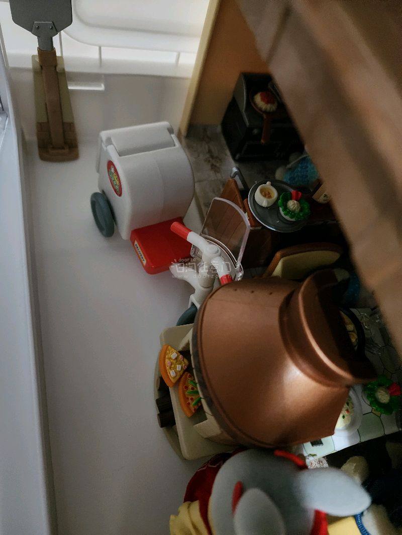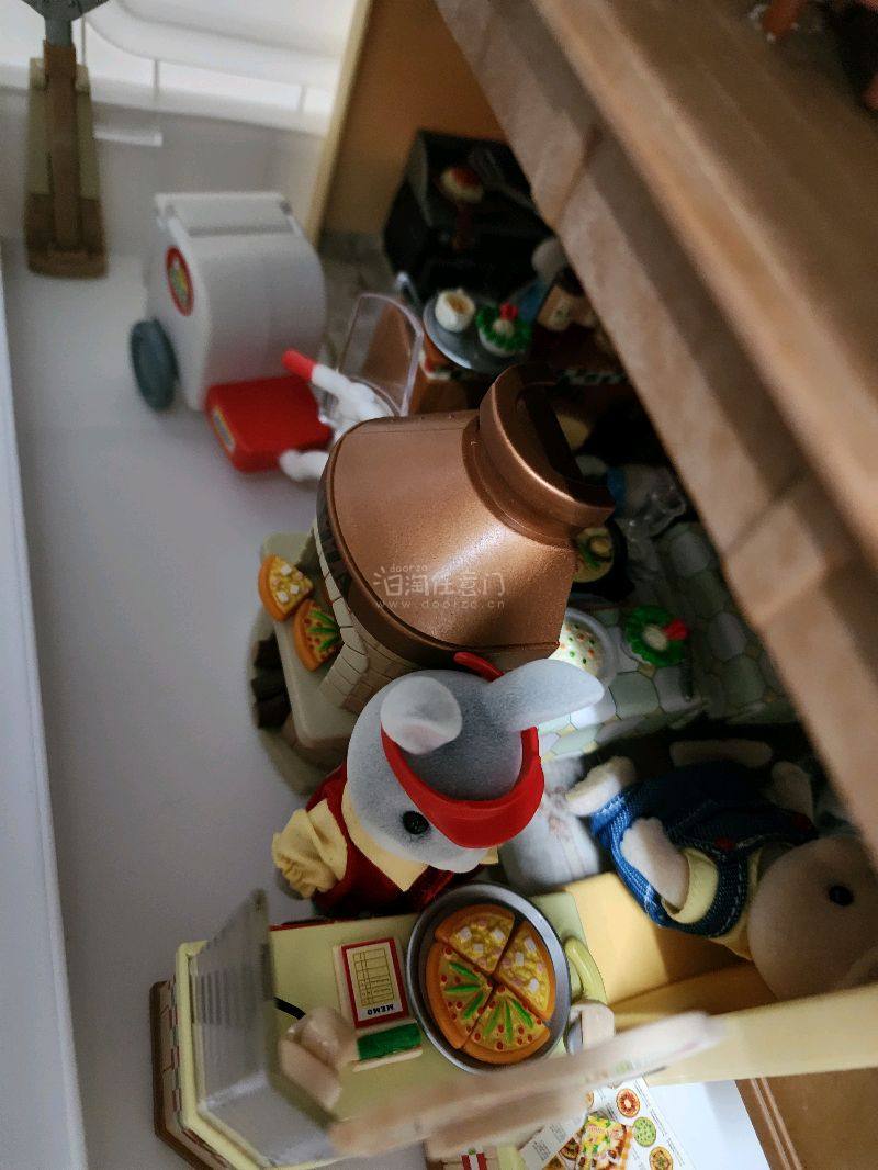 这一套很早之前森贝儿生产的披萨店的小套装,感觉和森贝儿之前生产的面包店和搭配,里面是面包店外面卖披萨。