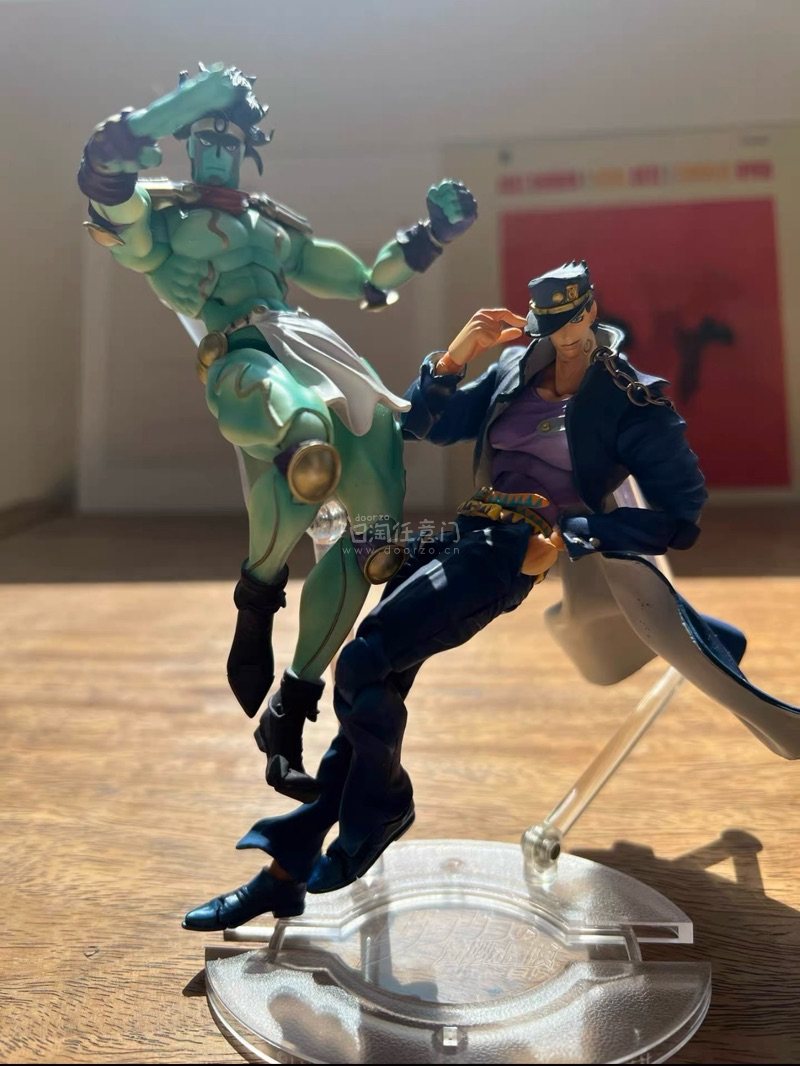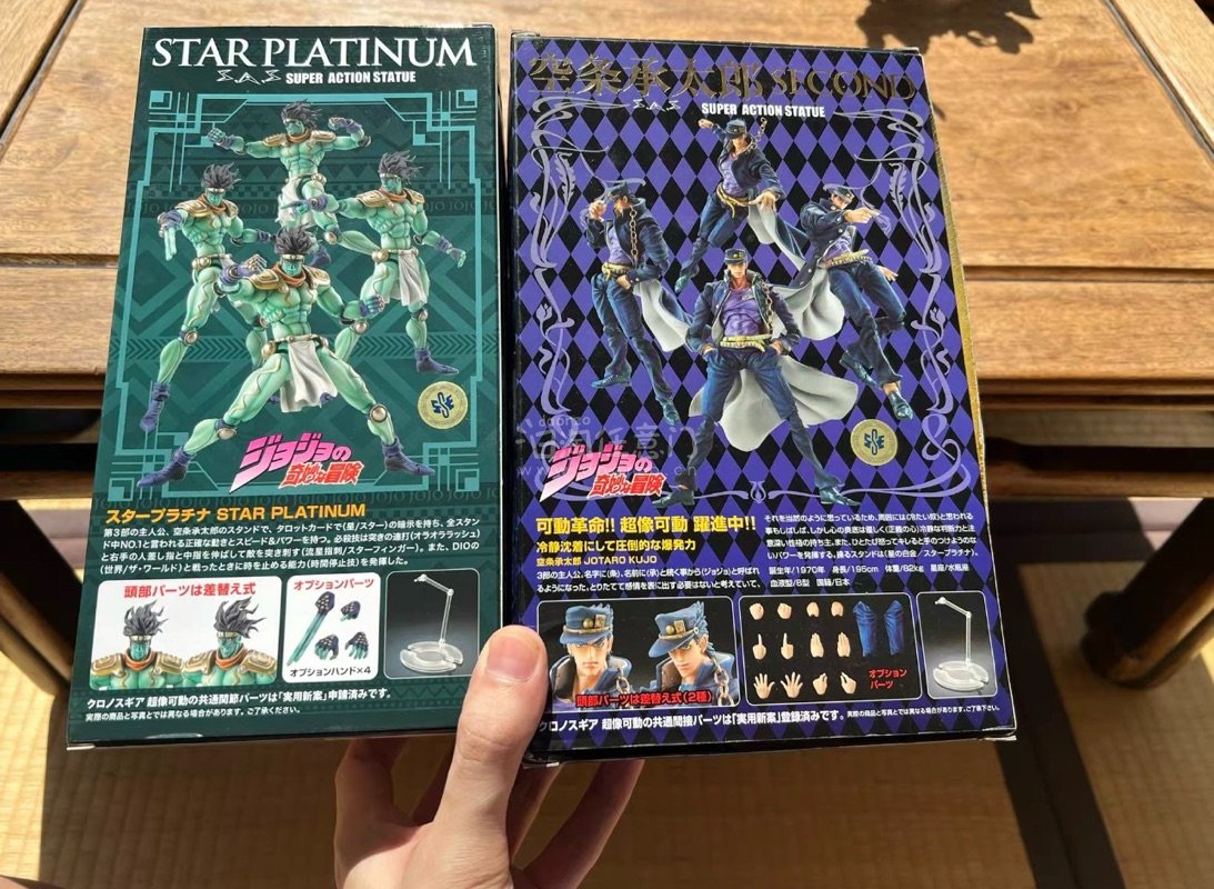 【“欧拉警告”降临!我的承太郎蓝色限定款开箱实录】 当初在日网刷到官图时差点捏碎手机——这抹深海蓝简直就是为无敌的承太郎量身定制!超像可动这次用珠光漆复刻了第三部经典的校服褶皱,肩线弧度恰好还原了星辰十字军迎风屹立的剪影。最致命的是替身「白金之星」的透明蓝特效件,拳锋缠绕的星辰流光仿佛下一秒就要爆发出“欧拉欧拉”的撕裂声? 从代购下单到清关完成整整煎熬了四十天,拆箱时连呼吸都带着海风般的咸涩激动。实物可动性堪称怪物级:腰腹关节能完美再现逆光指人的名场面,微雕的帽檐阴影下藏着比漫画更凌厉的眼神。现在他镇守在我的显示器顶端,每当灯光扫过白金之星的虹彩波纹,就像听见了时钟拨回1989年的潮声——这波跨越太平洋的奔赴,连时停三秒都不够宣泄我的狂喜!