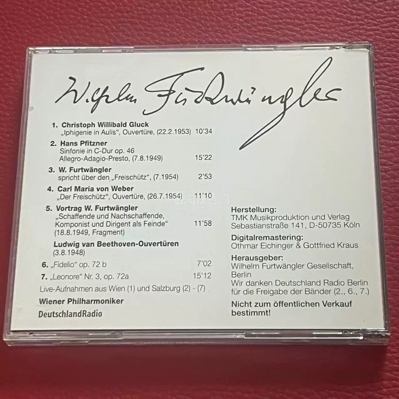 富特文格勒 协会盘 1948-54维也纳/萨尔斯堡现场 德版 TMK 10670,德国协会限定,带IFPI码,收录格鲁克、韦伯、贝多芬等经典,富特文格勒亲自讲座,内容丰富,收藏佳品