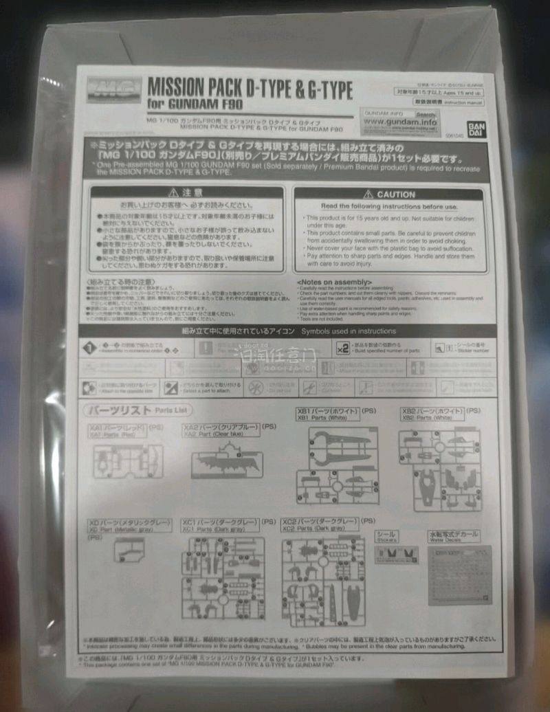 万代MG 1/100 F90高达D装备G装备任务配件PB限定, F90的配件包有很多,PB限定的也不少,不过这个是我觉得最帅的一个,配合F90又可以摆出很多造型