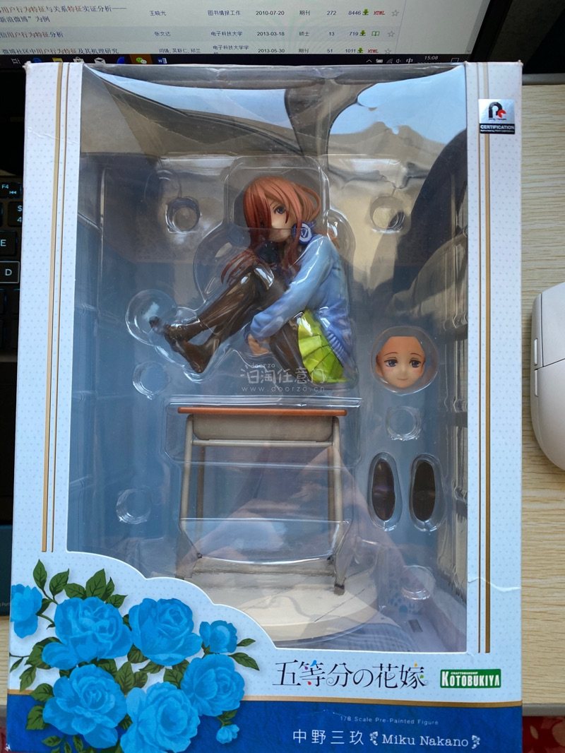 寿屋的三玖真是把“文静宅女”的气质拿捏死了!这个微微低头、手指无意识卷着发梢的小动作,配上标志性耳机,简直神还原。制服的质感处理得很棒,百褶裙的垂坠感自然。重点夸夸面相,那种有点害羞又专注的“三玖式”表情,实物比官图还戳人。日版无瑕疵,盒子八角尖尖,挖煤姬打包还是一如既往的让人安心,开箱体验满分!
