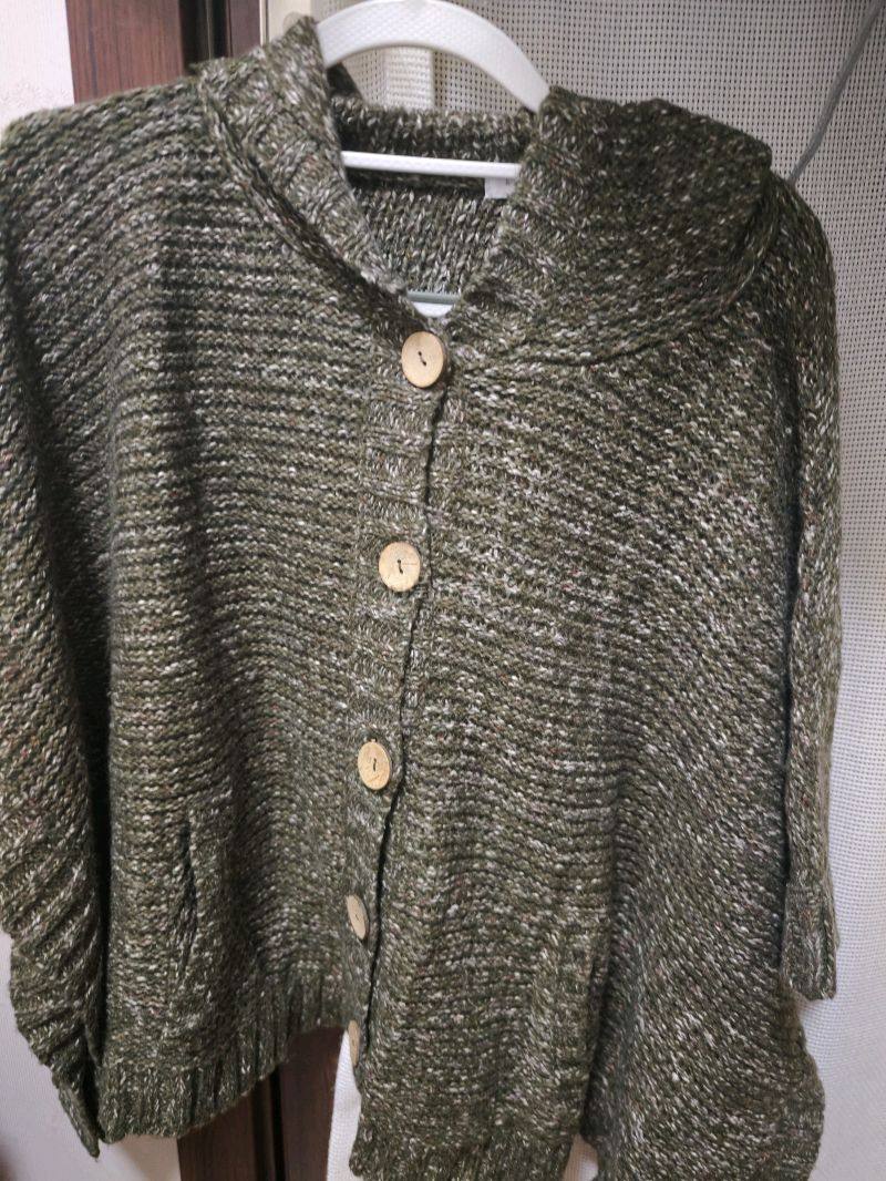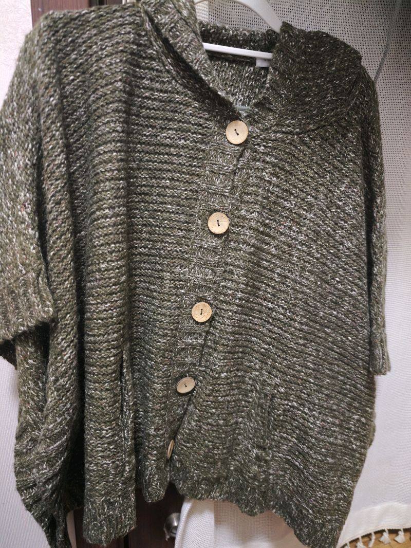 《 ルイ ジャンヌ 》《 良品 》 モスグリーン フード付きニットセーター (M