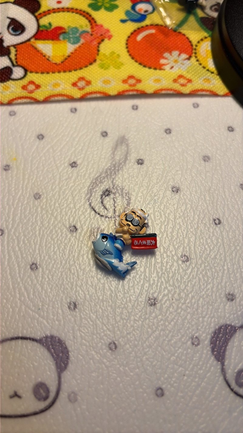 一个超级迷你小的骑在鲸鱼上举旗子的加藤茶老头子,这个IP非常的可爱,他有很多不同地方限定的联名。还有大阪章鱼烧的老头