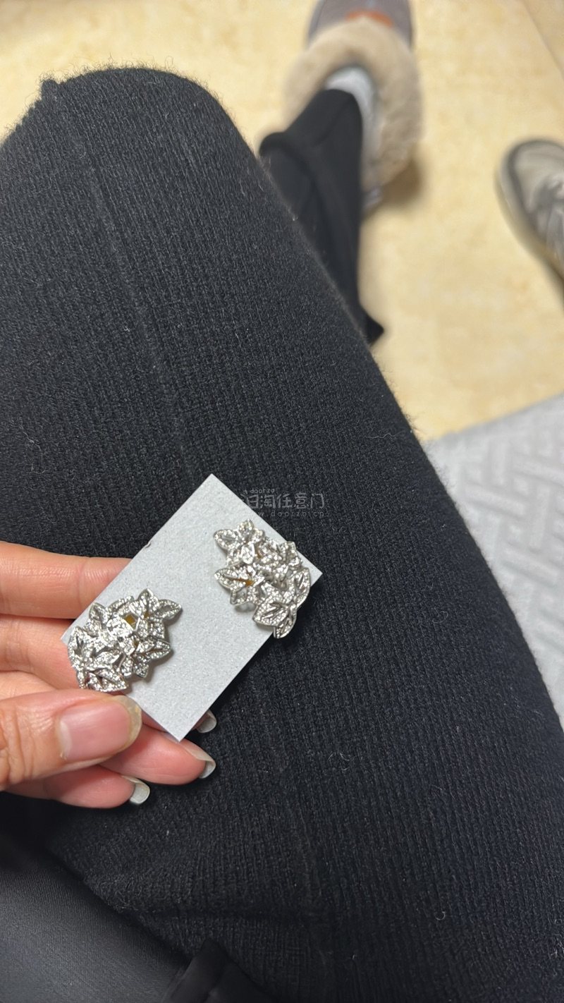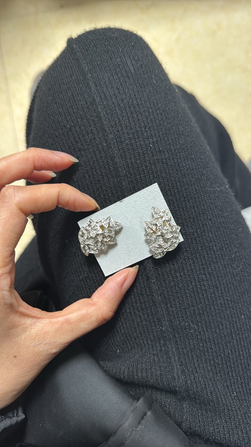 ヴィンテージDior ラインストーンフラワーリーフシルバークリップイヤリングChristian Dior;没有明显的损伤或污渍