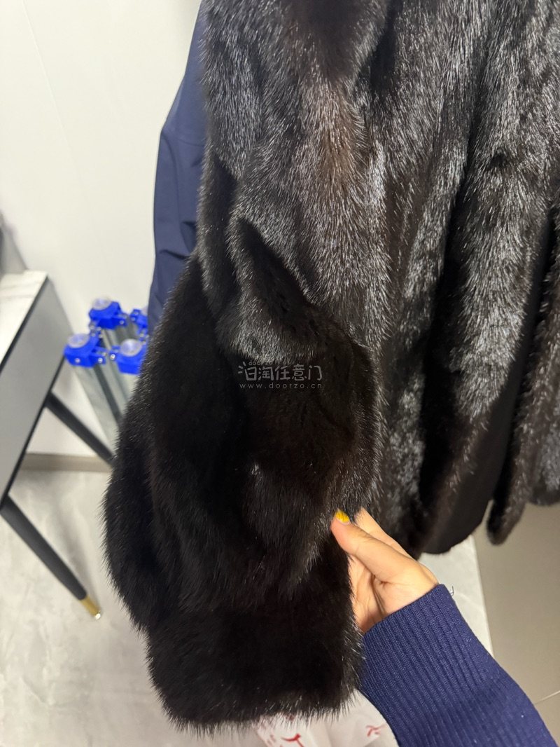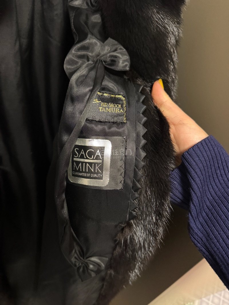 SAGA MINK 黒いロングスリーブミンクファーコート 毛皮 ミンク 本毛皮有些许损伤或污渍