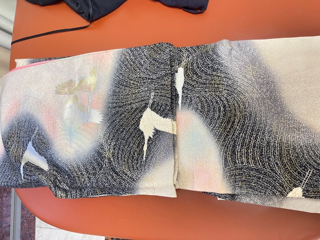 这件和服非常新,跟卖家描述一致,肉眼无暇。银箔这种容易脱落的材质也没有脱落,整件非常闪!比商品图好看太多,仙鹤上也用了银线去绣。商品图还吞了云纹旁边的彩霞,到手非常惊艳,仙气飘飘。然后快递也是如期到达,非常满意~