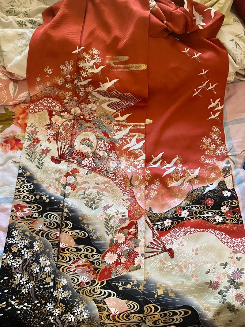 这次收到的是一件橙色的振袖和服,图案精致美丽,有盘金绣,状态也很好,价格实惠。挖煤姬下单超级方便,购物流程简单便捷,物流选择也多,这次用的小航空,很快就收到了,打包也很可靠,非常满意的一次购物