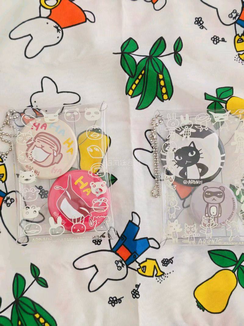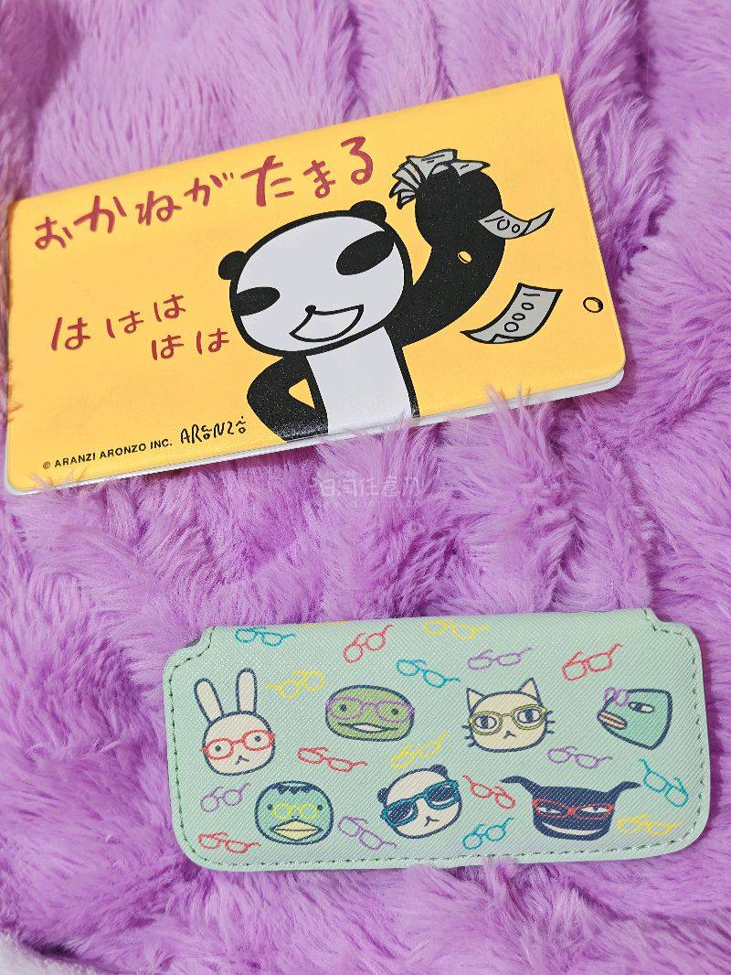 此次收到了阿朗基的证件套和眼镜包 满印的图案非常可爱 证件套上熊猫拿着大把钞票的动作看上去非常帅气 还有两个pvc满印袋子 我用来装了几个小胸针 很合适 是相当满意的一次购物~