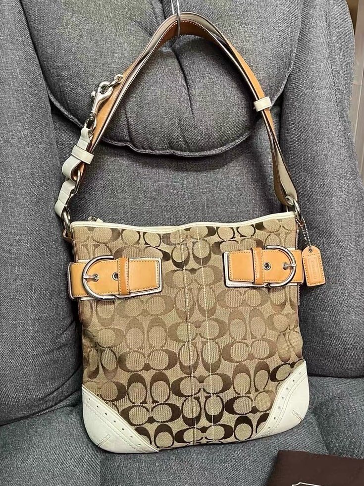 Coach中古淘货战绩又更新!这次的两只简直是实用与颜值双在线。一只黑色仿鳄鱼纹包太戳我,纹路清晰立体,自带清冷高级感,皮质硬挺有型,不管是手拎还是单肩都气场拉满,通勤背去开会瞬间显得干练利落,而且耐脏耐磨,中古包的质感真的没话说。另一只经典老花单肩包是闭眼入的百搭款,标志性的老花图案复古又耐看,包身轻盈不压肩,容量刚好装下手机、口红、充电宝这些日常小物,逛街约会背它超合适。两只到手成色都很惊喜,包面没明显磨损,五金也没氧化,百元价位淘到这样的宝藏,中古爱好者真的会狂喜!