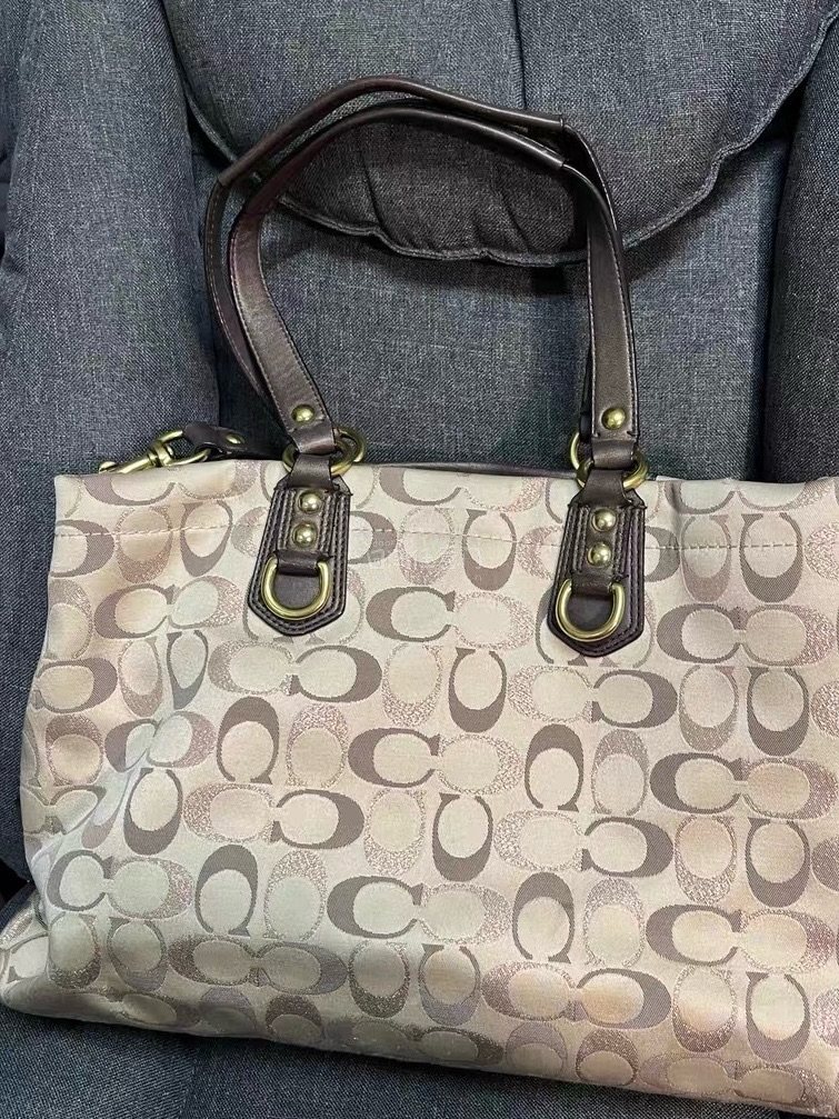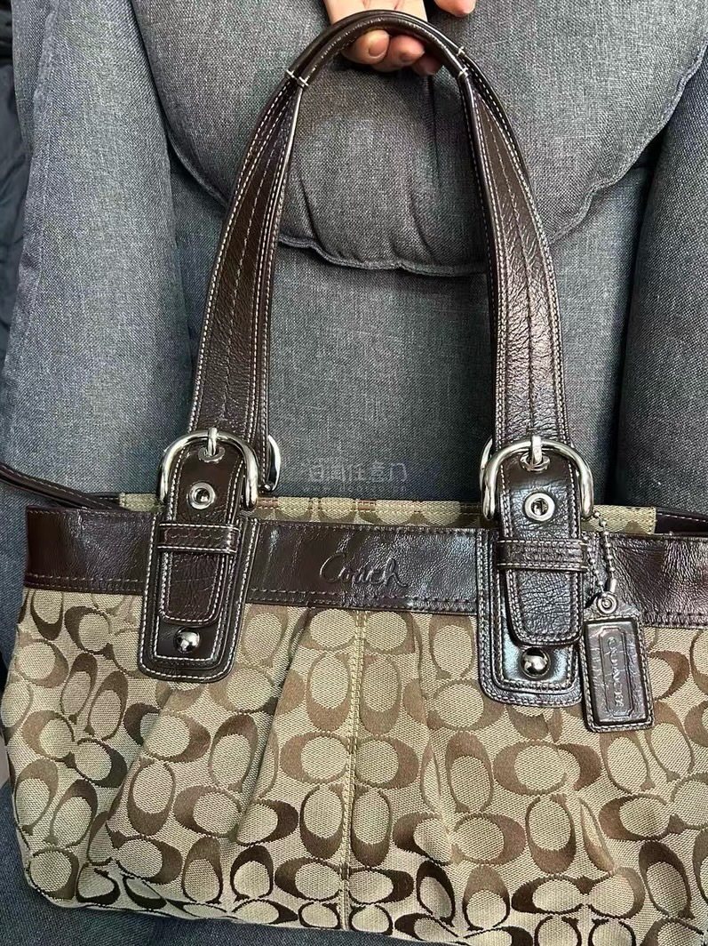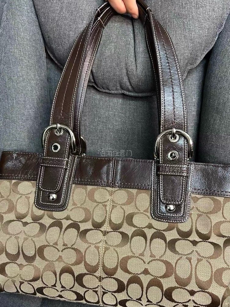 Coach中古包的囤货快乐谁懂啊!这次入手的两只老花款直接承包我所有日常穿搭。一只可单肩可斜挎的老花包太实用,肩带长度能自由调节,背在肩上轻盈不压肩,斜挎着出门逛街解放双手,经典老花图案复古又耐看,包身不大却超能装,手机、粉饼、钥匙和充电宝通通塞得下。 另一只横版托特老花包堪称通勤神器,宽大的包身能轻松放下13寸笔记本和文件夹,皮质厚实挺括,背再久也不会软塌变形,简约的托特版型搭配标志性老花,不管是配通勤西装还是休闲卫衣都毫无违和感。两只都是精挑细选的好成色,包面几乎没有划痕,五金也没氧化