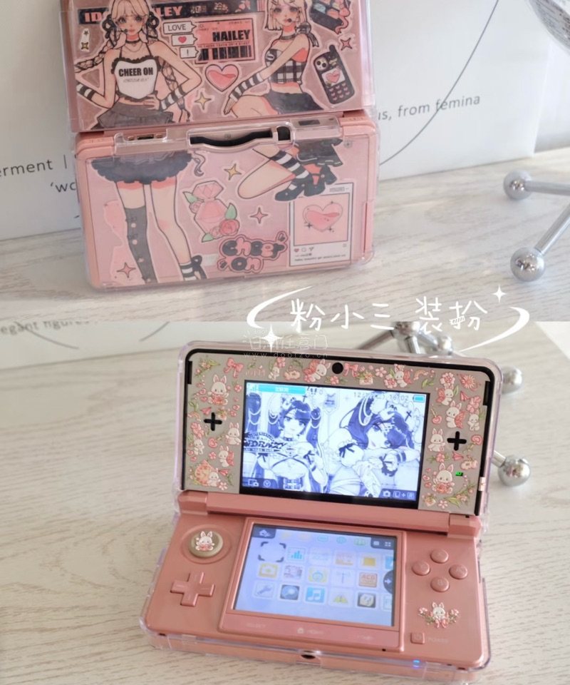 入手老小三 盲目的选了个粉的 [笑哭R]到手后发现 粉机比白色要难装饰 买了同色系贴纸咕了下背卡 c屏用了银色痛贴和美甲贴 效果不错 美上加美了 粉色也不错[偷笑R]