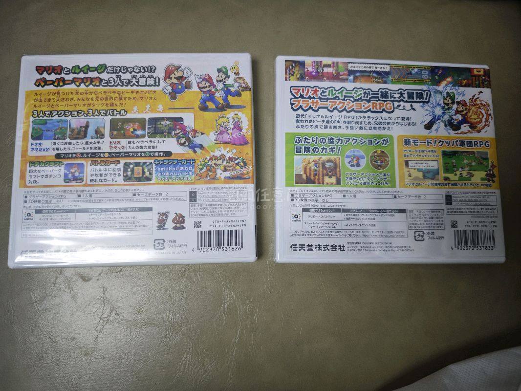 挖煤姬海淘圆满下车!全新3DS的《马里奥与路易吉RPG》和《纸片马里奥mix》太香啦~ 经典RPG玩法搭配脑洞剧情,纸片跨界联动超有梗,3D效果拉满回忆感。包装严实无瑕疵,物流比预想快,老任的快乐果然要原装正版才够味,怀旧党狂喜!