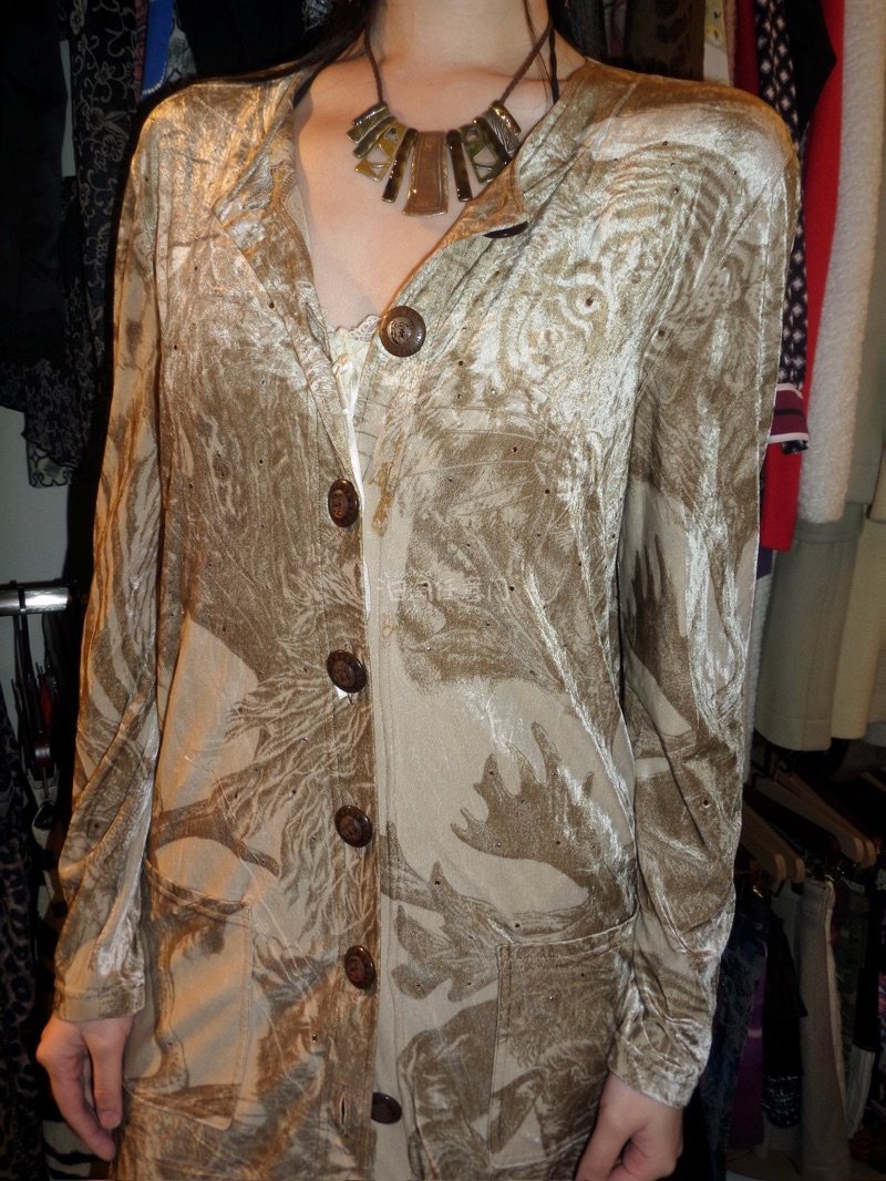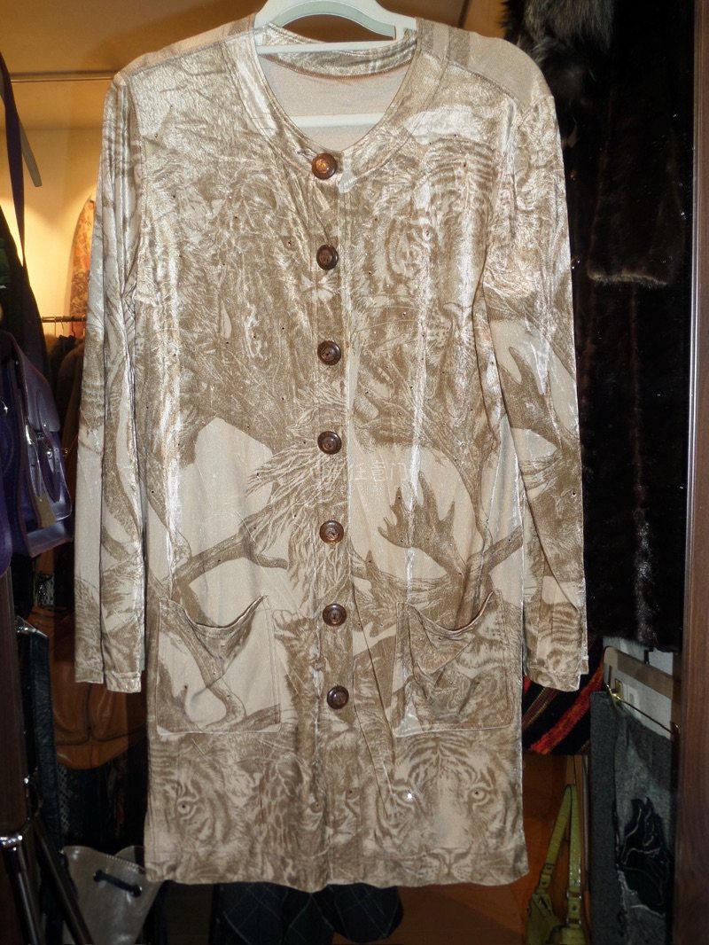 伊太利屋 アニマルプリント ゆったり ロング カーディガン ベロア生地 7伊太利屋;接近未使用