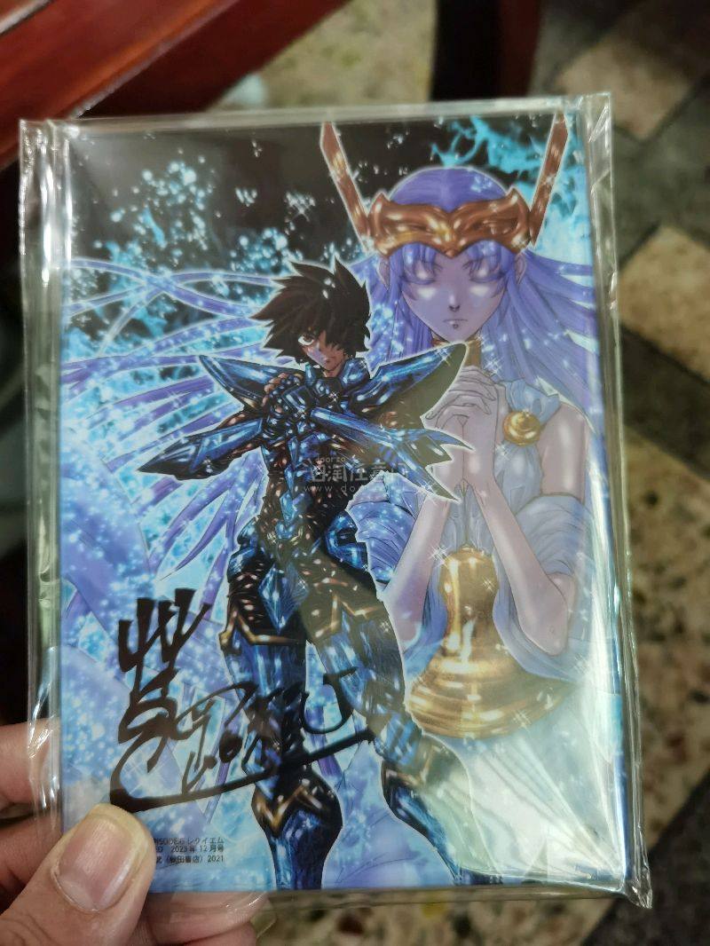 圣斗士星矢G的立牌和扇子 还有海皇的亚克力小立牌卡 还有一份数码宝贝的文件夹 雅典娜的冰箱贴也是很棒的