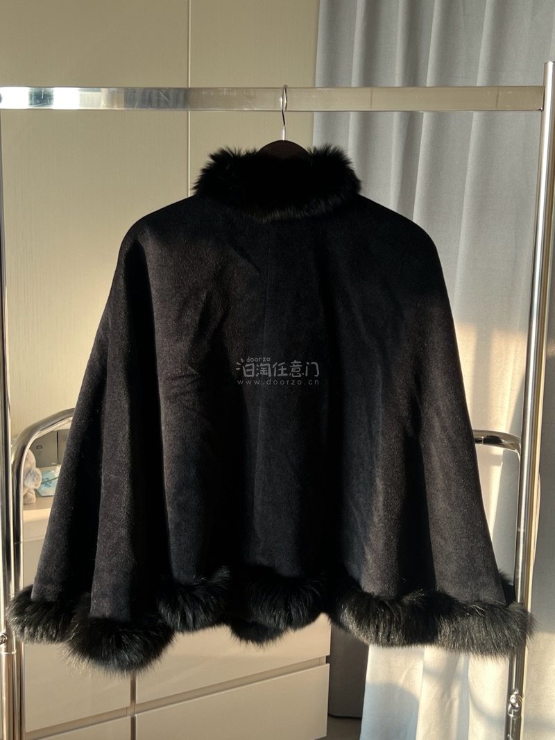 ■染めブルーフォックス×カシミア100■ケープ■着丈54㎝■