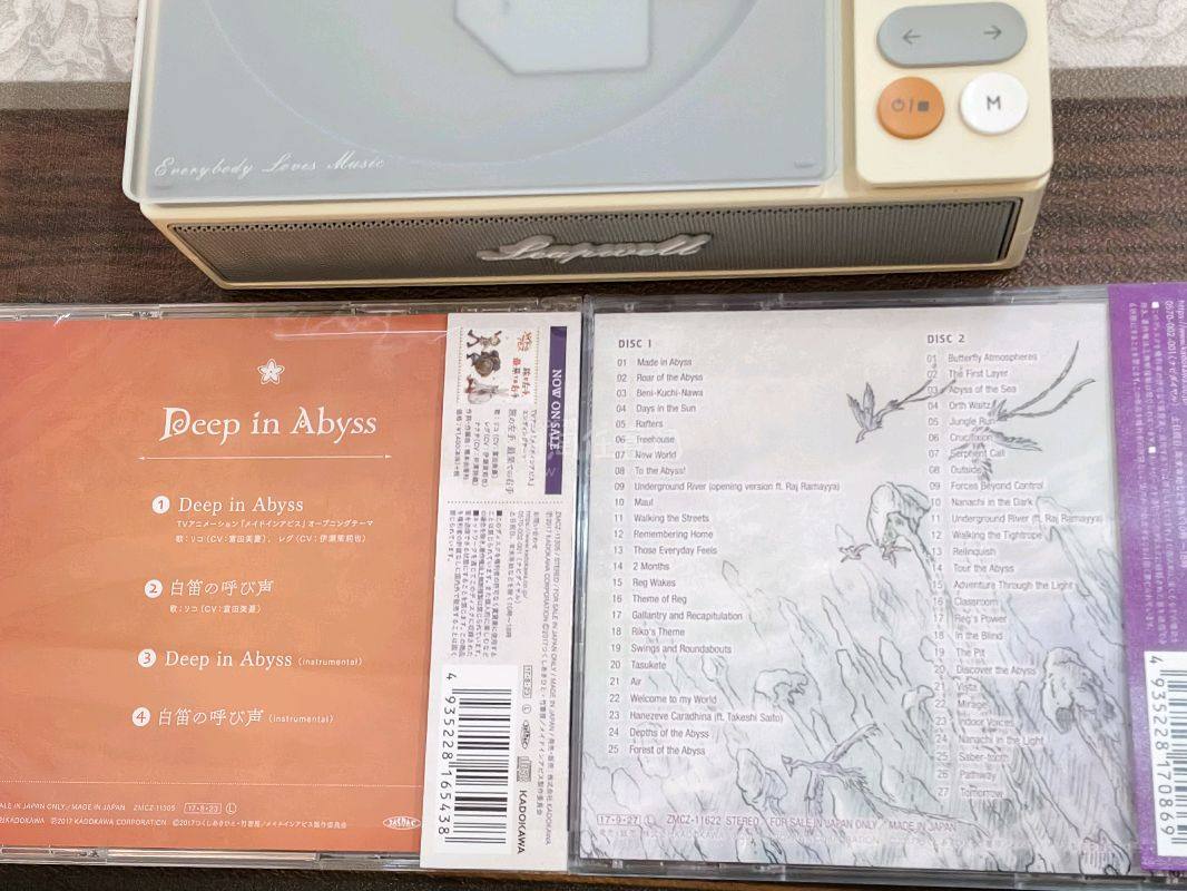 一张是动画的主题曲单曲《Deep in Abyss》,收录了片头曲《Deep in Abyss》和片尾曲《旅の左手、最果ての右手》,封面设计也充满了深渊的神秘感,音质非常纯净,听着歌仿佛又回到了那个既美丽又残酷的世界。 另一张则是第一季的Original Soundtrack,由Kevin Penkin作曲。他的配乐真的太有感染力了,从悠扬的探险旋律到紧张的战斗曲目,每一首都完美契合剧情,实体CD拿在手里质感十足,侧标和盘面设计也很精致。 这次用的挖煤姬平台体验真的很棒!商品信息清晰,下单流程顺畅,物流也很快,包装得非常仔细,CD完好无损。平台客服响应及时,整个购物过程安心又愉快。会继续在这里淘更多心动的ACG周边!