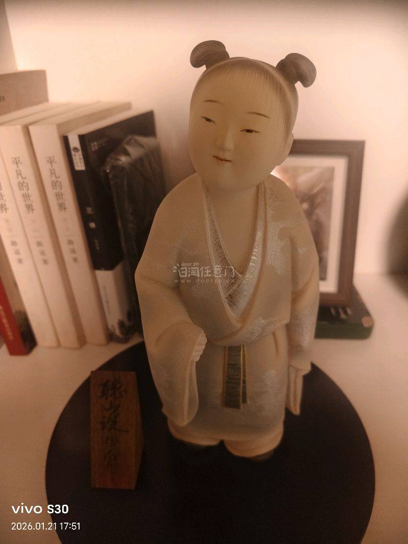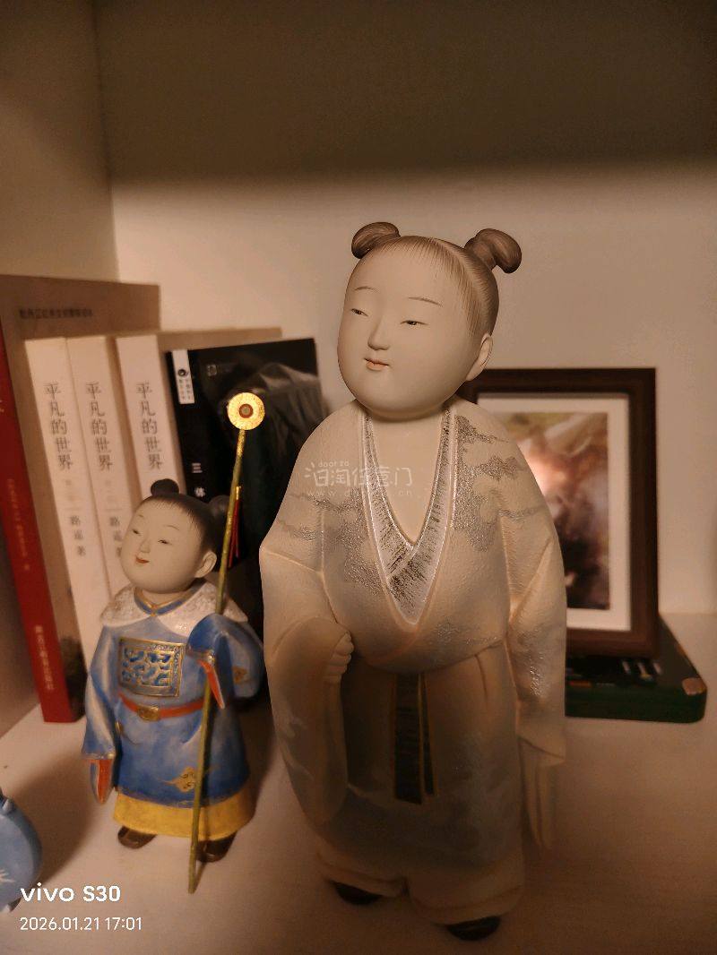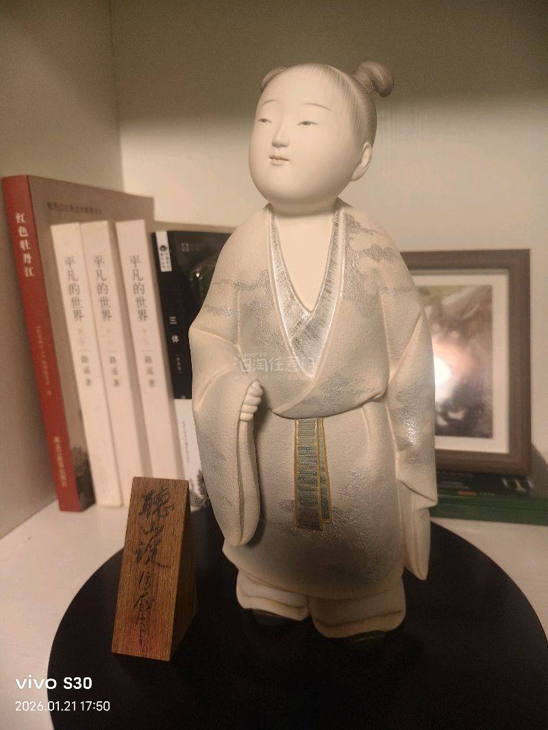 圆滚滚的脸颊,微闭的双眼,连发丝都带着细腻的弧度。每一处都藏着匠人的功力。不是量产的冰冷器物,是带着300年工艺沉淀和传统工艺的小确幸。 喜欢这种有历史、有温度的中古器物,大概就是迷恋这份手工制作的独特质感吧 日本人形大师 中村信乔 作品