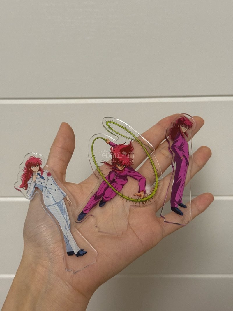一直非常喜欢幽游白书对于主角团的设计,四个主角分别代表了四个颜色,看起来五颜六色的很漂亮!这次在挖煤姬日淘收到了几个立牌,我把它们拆开来放在了毛毡板上,看起来很生动很漂亮!!分享一下第三张里我最喜欢的藏马哈哈哈,还是用的拼团物流团长很负责,速度也很快,打包也很不错!期待下一次购物!