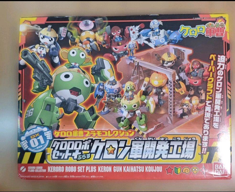 万代红标绝版老物 keroro军曹 DX系列01兵工厂,这个真是买一个少一个了,雅虎都不大好找了。一盒可以的拼出5个全人物青蛙,还带一个场景,绝对是老模的典范