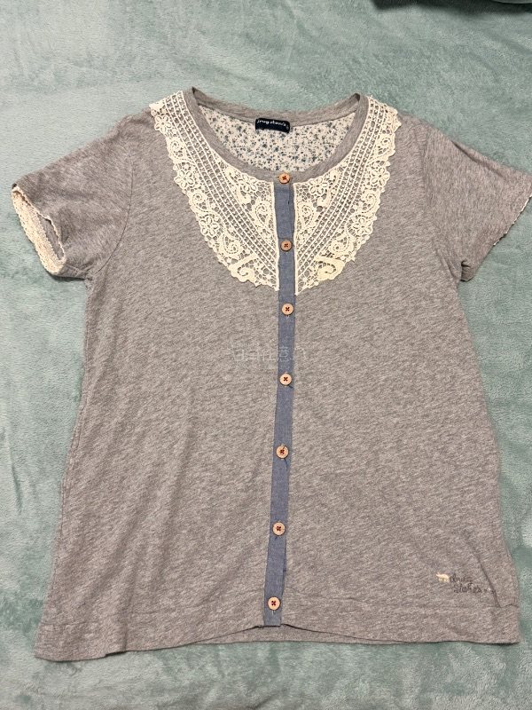 ドラッグストアーズ drugstores レース襟付き カーディガン グレー 半袖 ボタンデザイン カジュアル二手;物流保障;没有明显的损伤或污渍