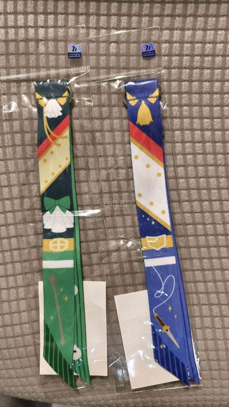 挖煤姬买了两条《少女歌剧》的飘带,分别是露女士和神乐光。实物真的很好看,配色很正,角色辨识度很高,拿在手里一眼就能看出是谁。材质和做工也不错,不是那种随便糊出来的周边,收藏或者挂包都很合适。发货和包装也让人放心,整体体验很开心,歌剧粉表示很满足!