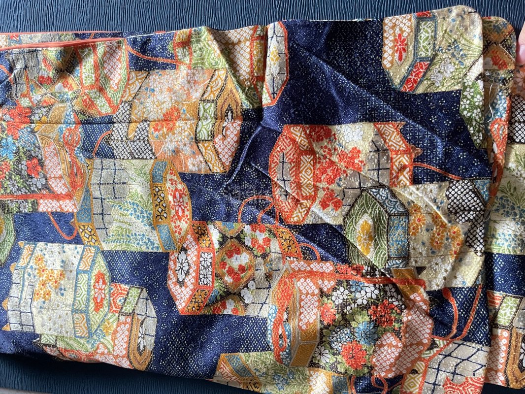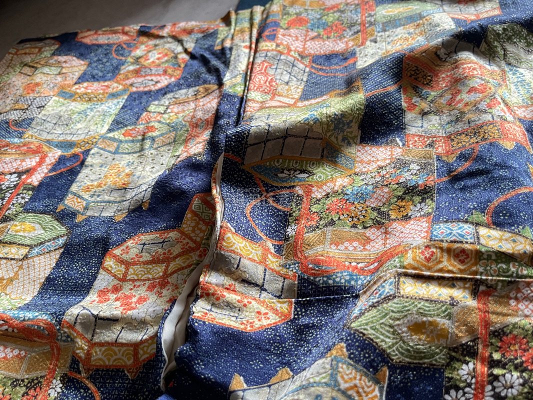 《京都一輝堂》小紋 貝桶尽くし 正絹 着物 身丈約165cm 裄丈約65cm 25z11-6212