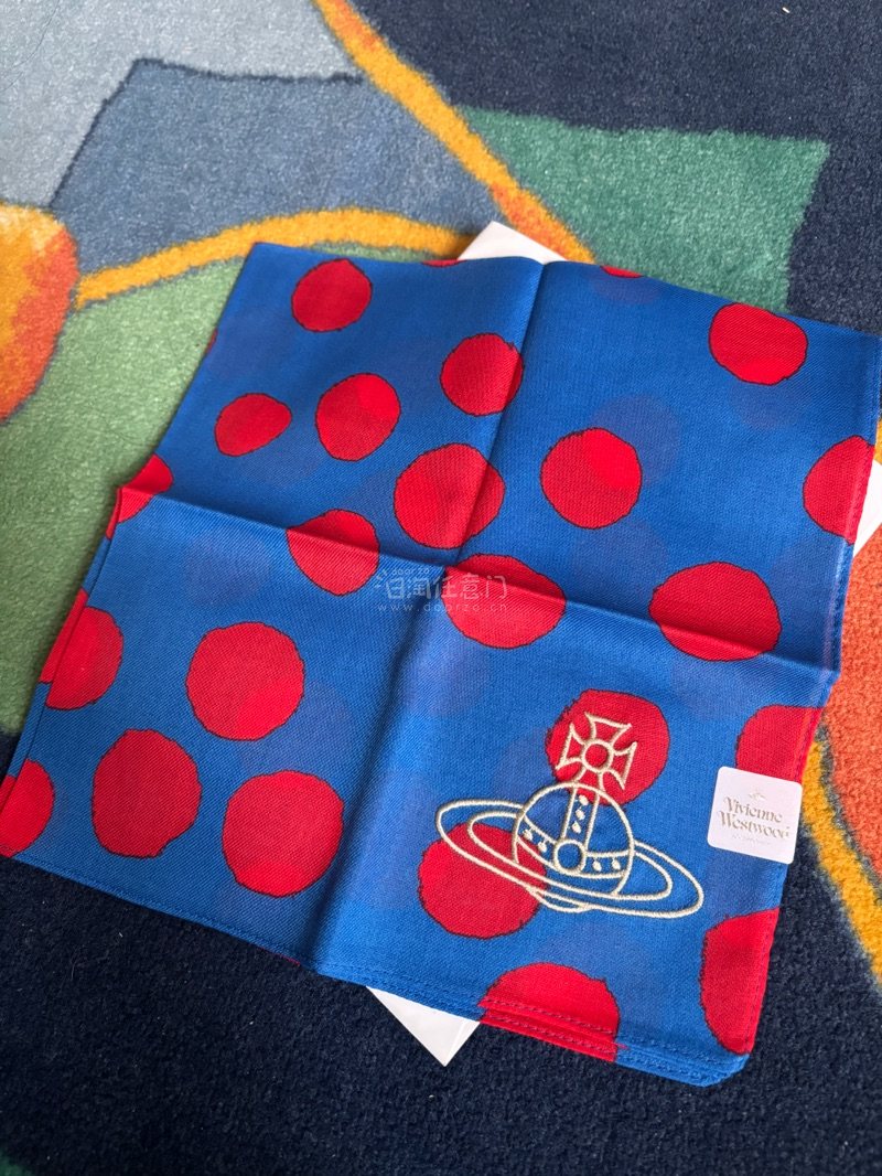 终于蹲到这条Vivienne Westwood的蓝底红点方巾!经典的土星刺绣配上复古水玉波点,配色明快又带着朋克感,无论是系在颈间、包上还是当作发带都超吸睛。拿到手质感软糯,尺寸刚好。