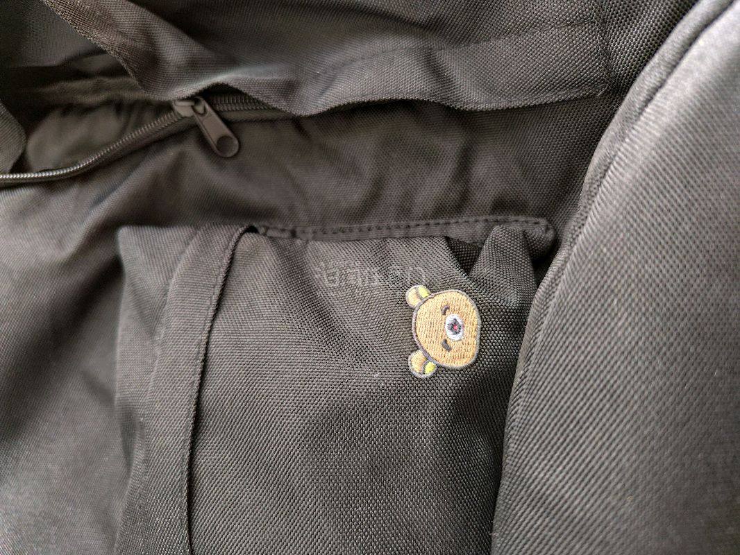 实用斜挎包和背包分享,斜挎包可以装水杯等。双肩包上有熊耳朵,外面一个小格子,还有一个大格子,放得下笔记本电脑。