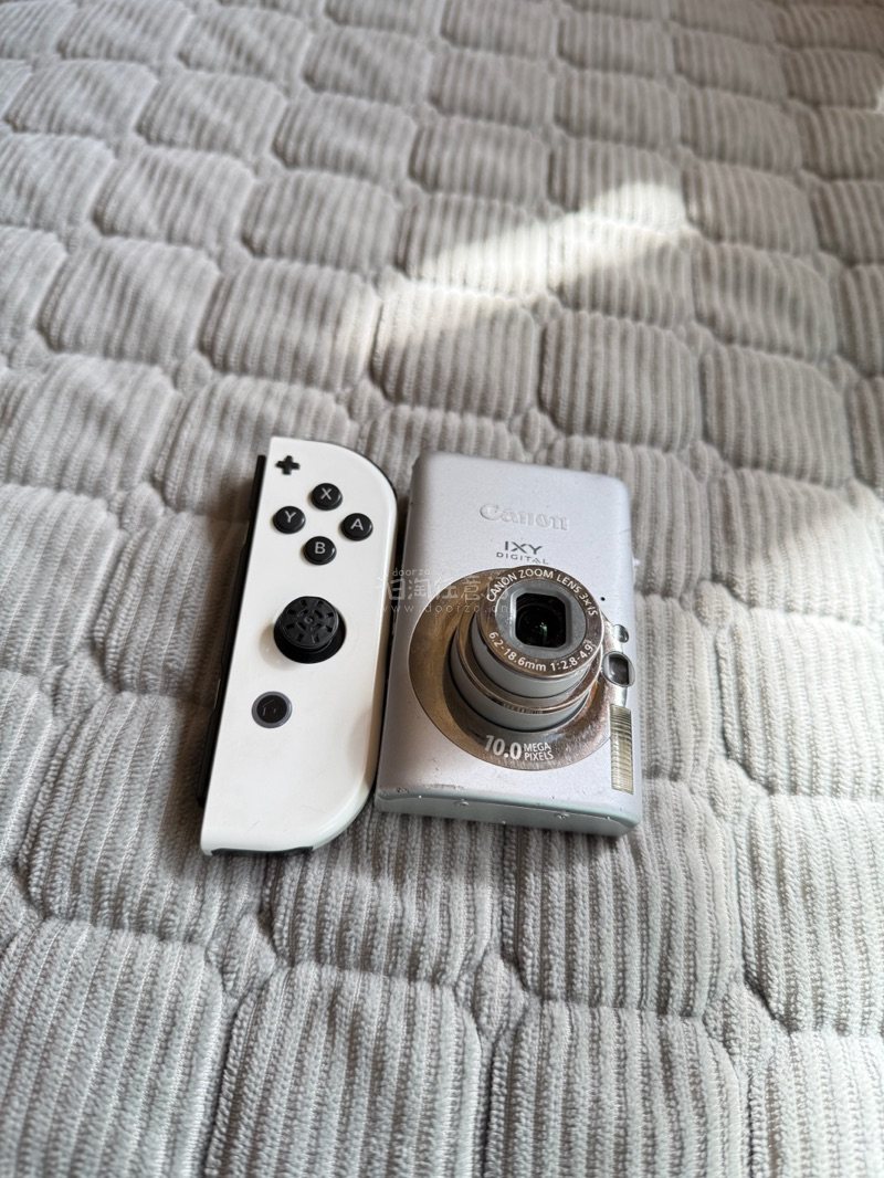 超喜欢,把我的两个心头好一起带回家了! 左边是Switch Joy-Con手柄,成色超新,按键回弹清脆,完全没有漂移问题。价格比国内二手便宜了近一半,用来替换我旧的漂移手柄,简直是性价比天花板。 右边是我的梦中情机——佳能IXY DIGITAL 10。拿到手比图片还惊喜,金属机身只有镜头圈有一丢丢掉漆,完全不影响颜值。试拍了几张,出片是自带柔焦的复古冷白皮,氛围感直接拉满,百元预算就能拥有的快乐,CCD入门首选! ? 必须吹爆挖煤姬:物流飞快,从发货到手仅12天,比预期快了一周,而且两个宝贝都塞了厚厚的缓冲,拆包时一点磕碰都没有 不管是淘中古CCD还是Switch配件,挖煤姬都能让人放心冲!选“美品”“良品”基本不会踩雷,百元就能解锁双倍快乐,海淘数码认准它就对了!