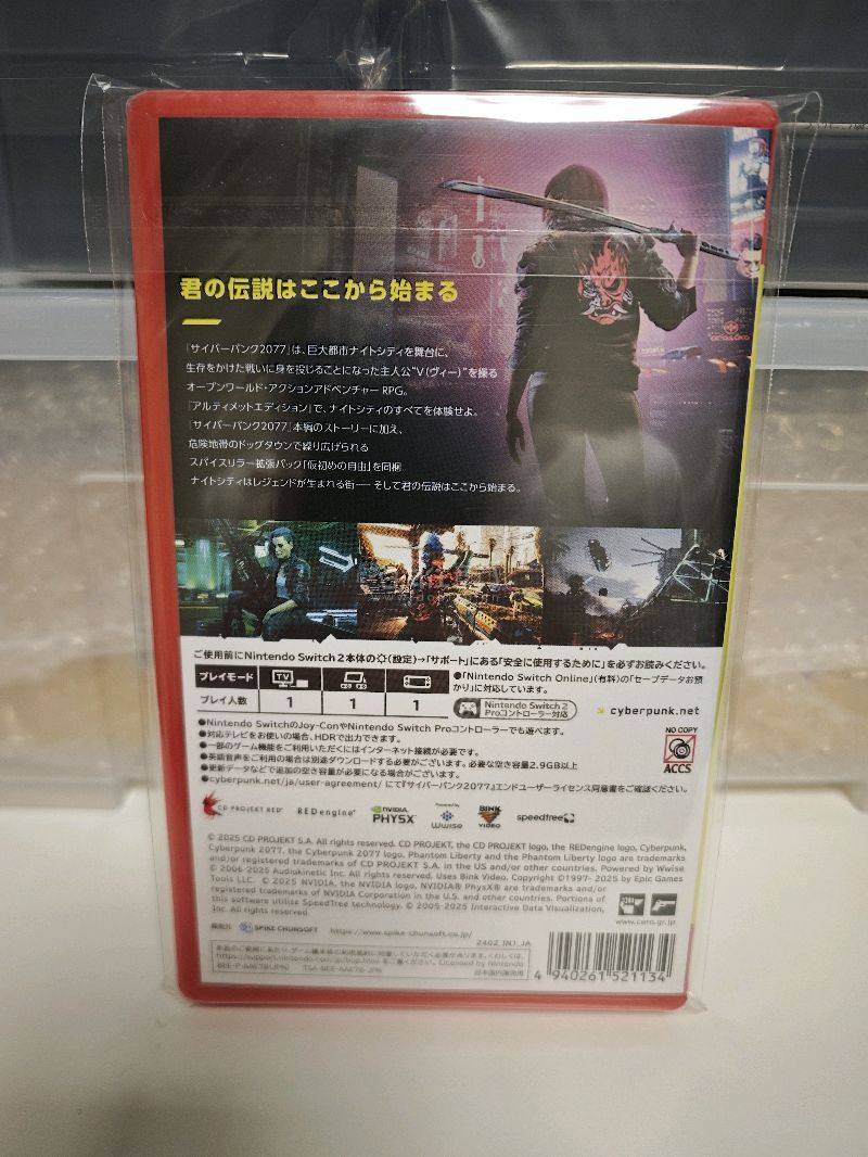 在日本亚马逊购入Switch2《赛博朋克 2077:终极版》。本作是 Switch2 首发重磅 3A 大作,也是该平台首款搭载 DLSS 技术的游戏,首次让任天堂玩家掌间畅游夜之城。游戏完整收录本体及高分资料片《往日之影》,解锁赛博朋克世界的全部剧情与玩法,支持跨平台存档共享,中文配音与字幕需单独下载语言包即可体验。本作深度适配 Switch2 机能,掌机和底座模式均设画质 / 性能双选项,依托 DLSS 动态缩放实现掌机 1080P30 帧、底座 1080P40 帧的流畅表现,纹理质量媲美次世代主机。同时加入 Joy-Con 体感挥砍、陀螺仪精准瞄准、触屏操作及鼠标模拟等专属玩法,让战斗与探索更具沉浸感。尽管为适配硬件精简了部分行人密度,却完整保留夜之城的霓虹氛围与核心体验,64GB 实体卡带与数字版同步发售,是掌机体验这款经典赛博朋克 RPG 的最佳选择。物流发的EMS,到货很快,包装也不错,推荐一下挖煤姬这个平台,希望大家都能淘到自己心仪的游戏!