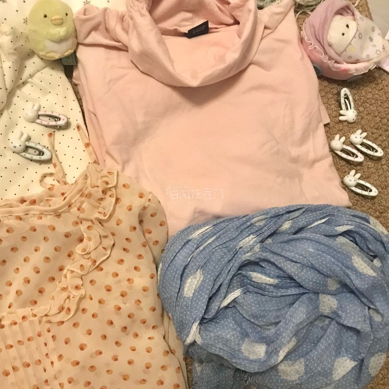 大波点拼小波点 太特别了 颜色也是特别美的水蓝色 还买到一件毛茸茸的内衬是碎花的小猪牌外套 好特别的材质
