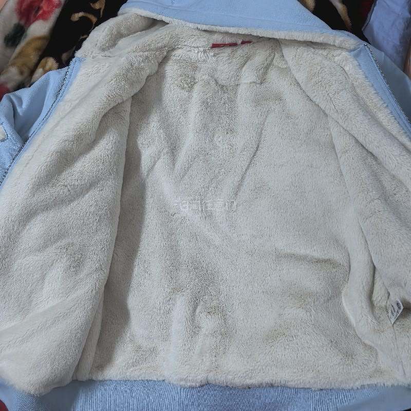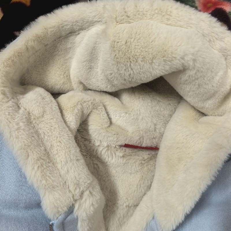 这是一件购自挖煤姬的衣服,蓝色非常好看,内衬是全兔毛非常保暖而且不会掉毛和染色,衣服非常厚实足足2.2kg重量,一件衣服比800蓬的羽绒服还保暖!