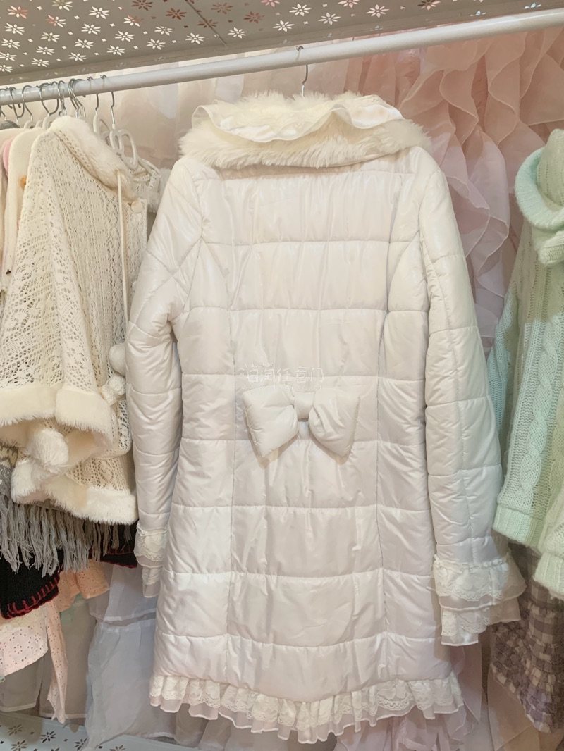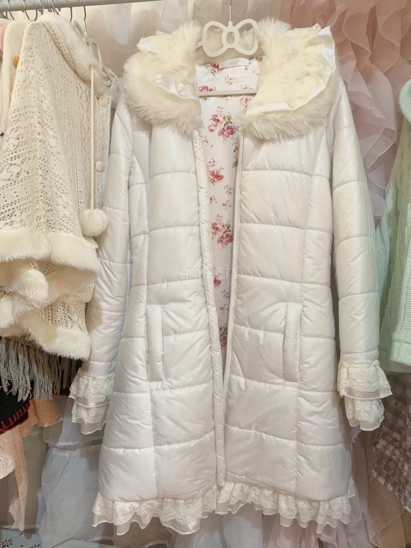 这是在雅虎日拍买到的,羽绒服毛领很好看,袖口和下摆还有蕾丝花边,后背有个蝴蝶结,成色很新,卖家发货很快,国际物流速度也很快十几天就收到了,拍卖出价很及时。