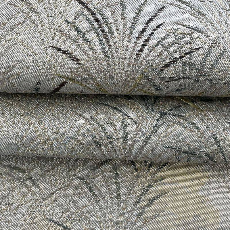 袋帯 美品 秀品 落款 秋草 金銀糸 灰色 六通 正絹 【中古】