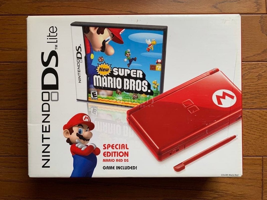 终于入手马里奥限定版NDS Lite!红亮机身配经典M标,还带《新超级马里奥兄弟》卡带,满满的童年回忆,太值了!