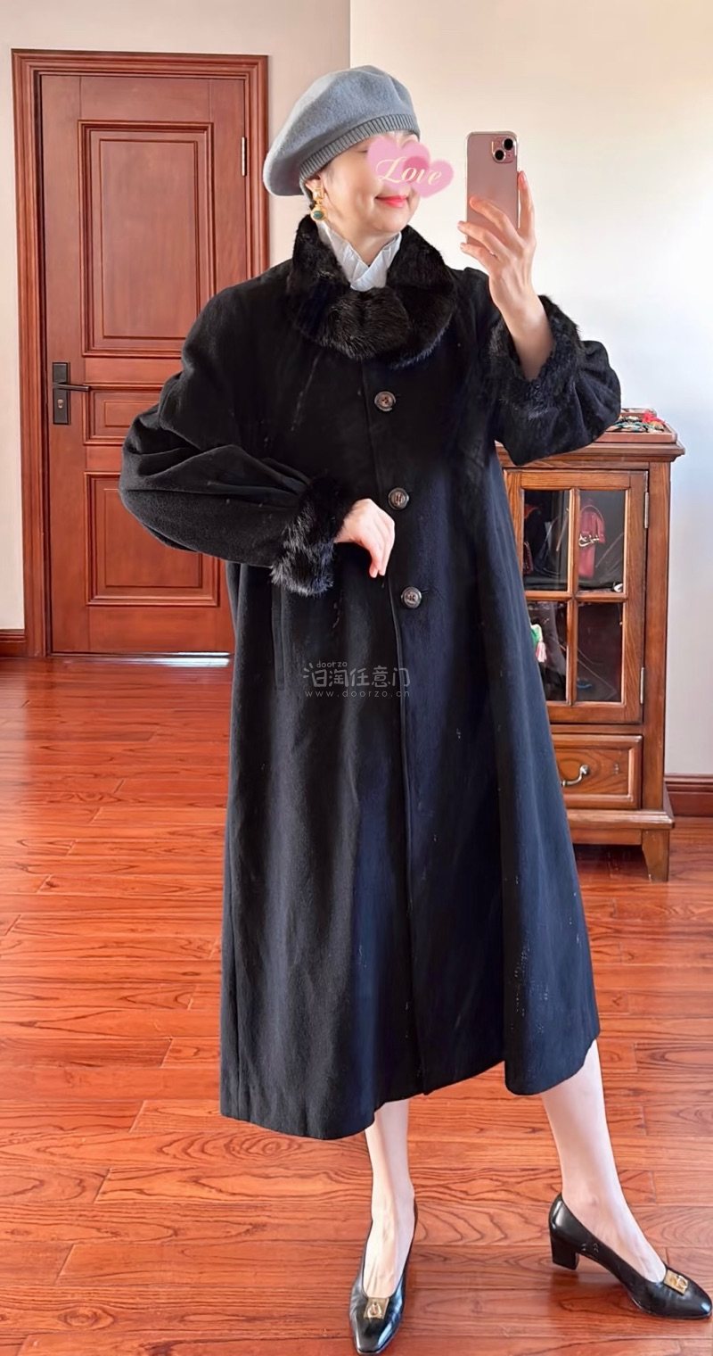 カシミヤ100% バルマン ロングコート ファー 黒 11号BALMAIN;没有明显的损伤或污渍