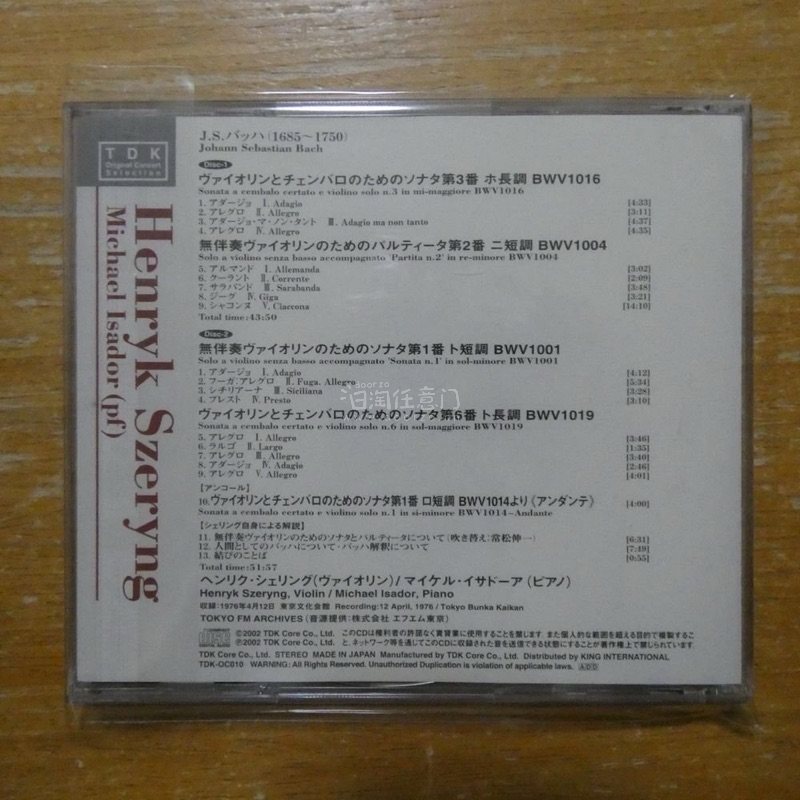 TDK 首发版本 发烧录音!巴赫 小提琴奏鸣曲 无伴奏小提琴组曲 谢林 东京现场 日首版2CD 发烧现场录音,大师级演绎名盘,绝佳的欣赏体验,音质极好,现场感十足,身临其境,日首高价版。