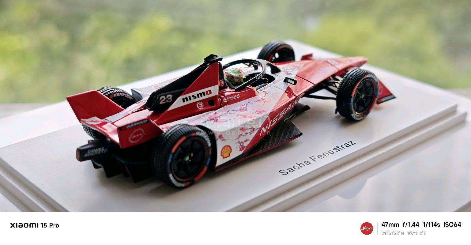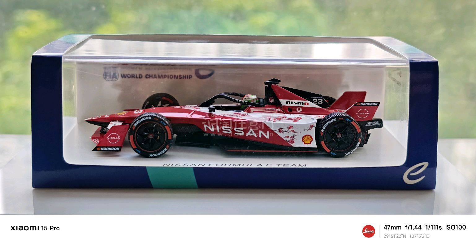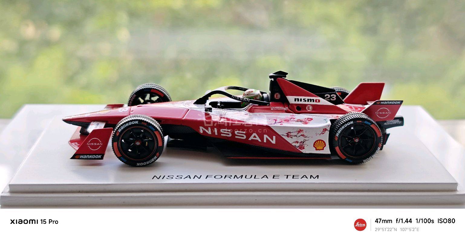 日产 Formula E GEN3(GNE3FE)电动方程式赛车模型,妥妥的新能源赛道传奇复刻,颜值和纪念意义双在线! 这台模型精准还原了日产厂队标志性的红银涂装,锐利的单座车身线条、低趴的空气动力学套件、封闭式轮拱,每一处细节都复刻了FE赛场上的速度美学。作为ABB FIA Formula E世界锦标赛的主力战车,它不仅是日本车企征战纯电顶级赛事的代表,更是将公路EV技术与赛车运动深度结合的产物;Gen3车型有着极致轻量化与超高能效,动能回收能力极强,是电动赛车技术迭代的缩影 选择竹蜻蜓线路到手品相完美,漆面均匀、贴纸精准、底盘与动力单元的细节也没有含糊。摆进我的赛车模型柜里,和燃油组的经典老车形成鲜明对比,一边是内燃机的咆哮传奇,一边是纯电时代的无声闪电,这种跨越时代的收藏感,真的太满足了!
