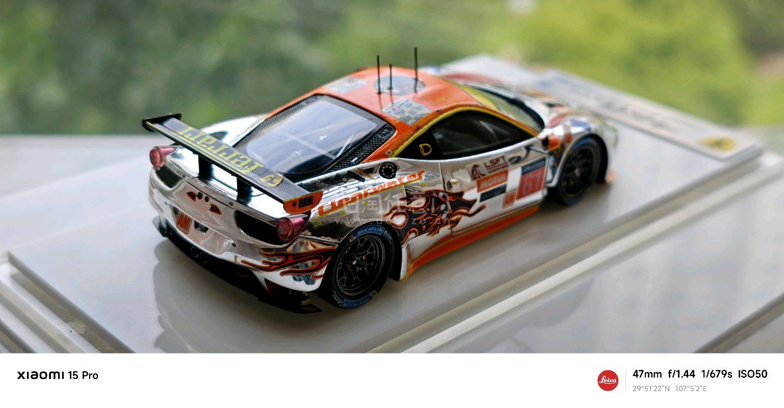 这次在挖煤姬APP入手了LookSmart 1:43 法拉利458 GTE 2016清水车队赛车模型。 实车是2016年勒芒24小时耐力赛GTE-Am组别战车,搭载4.5L自然吸气V8发动机,是法拉利经典自吸GT赛车,银橙火焰涂装辨识度拉满。 LookSmart精准还原了实车线条、拉花细节与赛事标识,做工细腻、比例工整。竹蜻蜓路线到手品相完好,无论是赛事情怀还是收藏质感都拉满,为我的赛车收藏再添一枚精品!