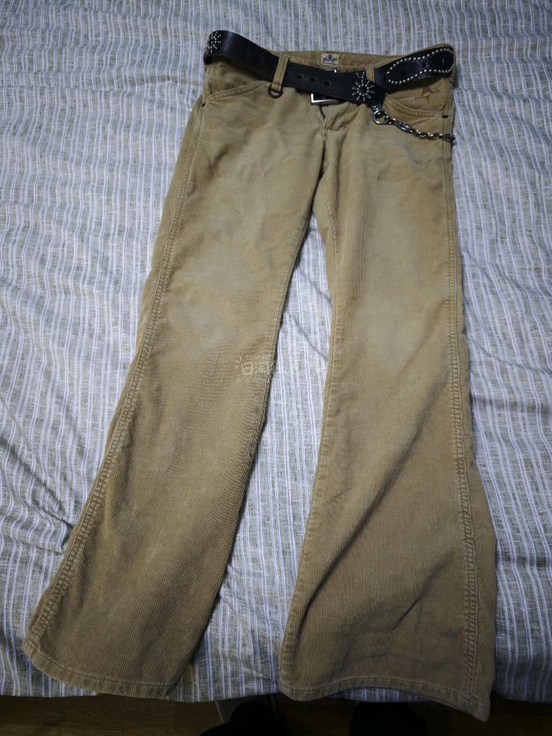 早期武骨风格和美式复古的经典结合款式,大喇叭,配牛仔靴和工装夹克简直太帅了!!真是买一件少一件,值得收藏~