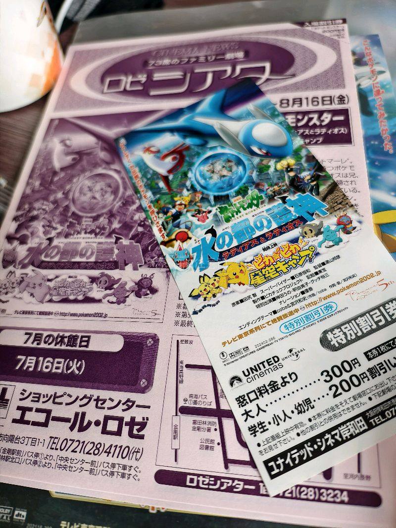 【映画チラシ(6)】3枚【 ポケットモンスター⑤ 水の都の護神ラティアスとラティオス 地方チラシ(レア)2枚+割引券 】